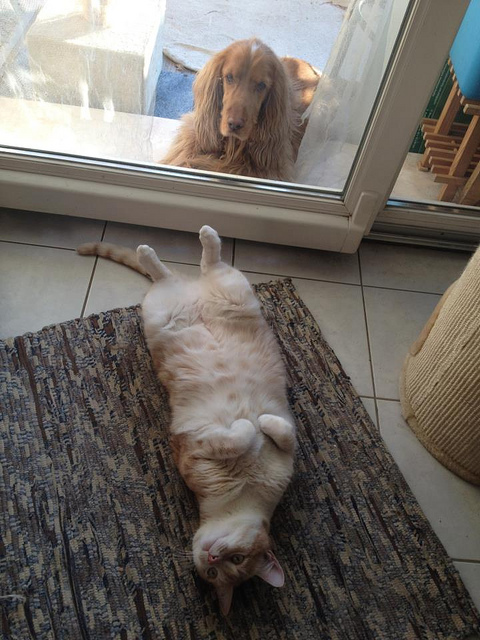 a pies opalał się w t-shircie #