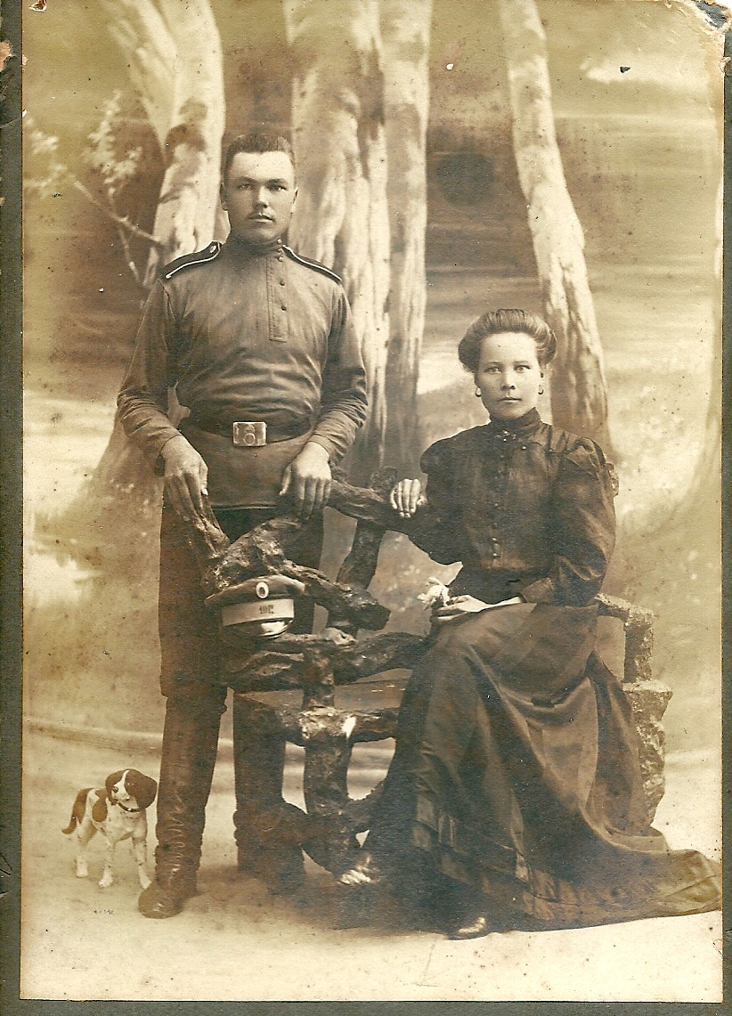 Władimir. Grenadier AD 1909 z żoną. Problem tylko z pieskiem - żywy li czy atelierowy? #
