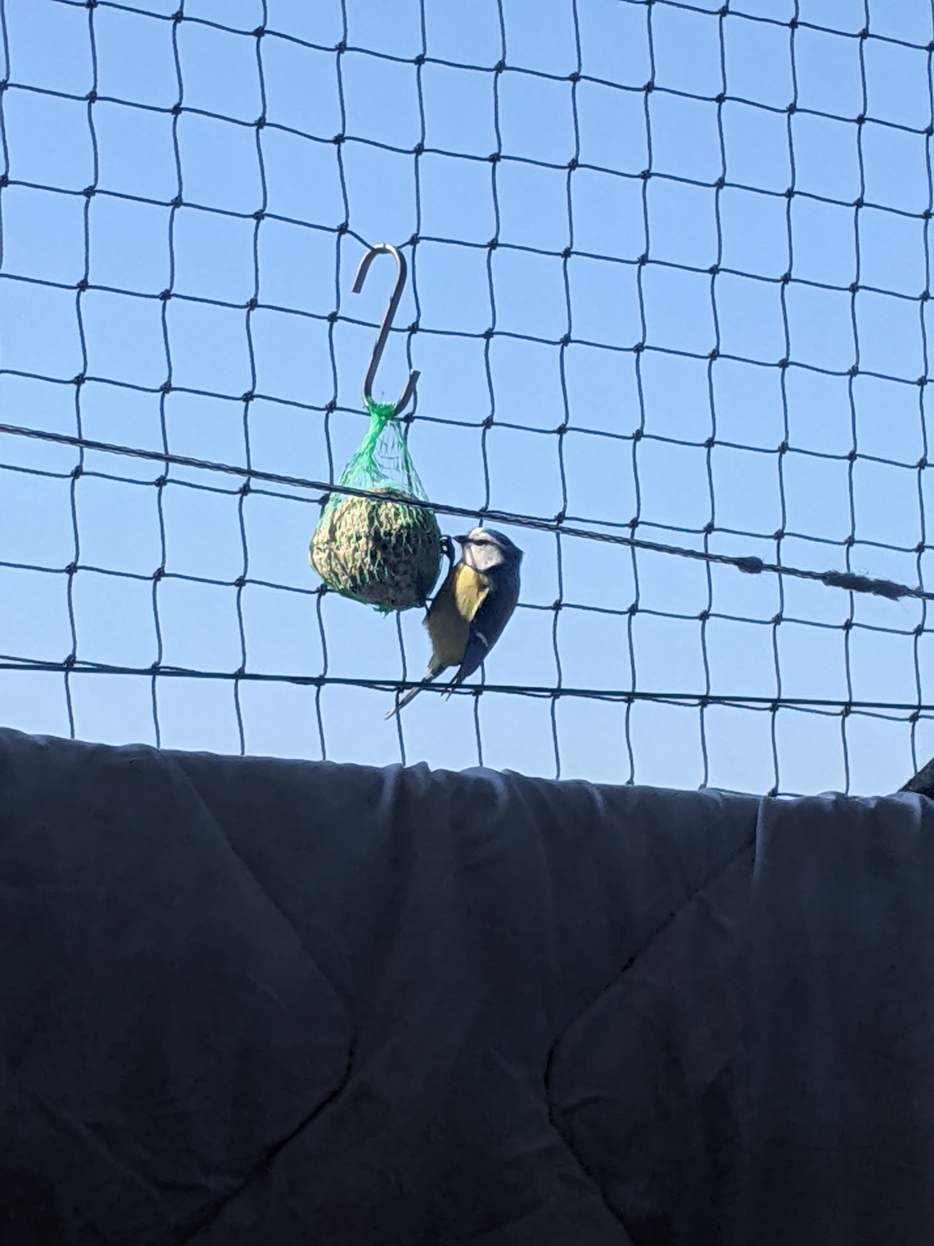 Dzień dobry, modraszko! Pojadła, a potem wskoczyła na sznurki z praniem, skoczyła na moją upraną czapkę, a potem poleciała #
