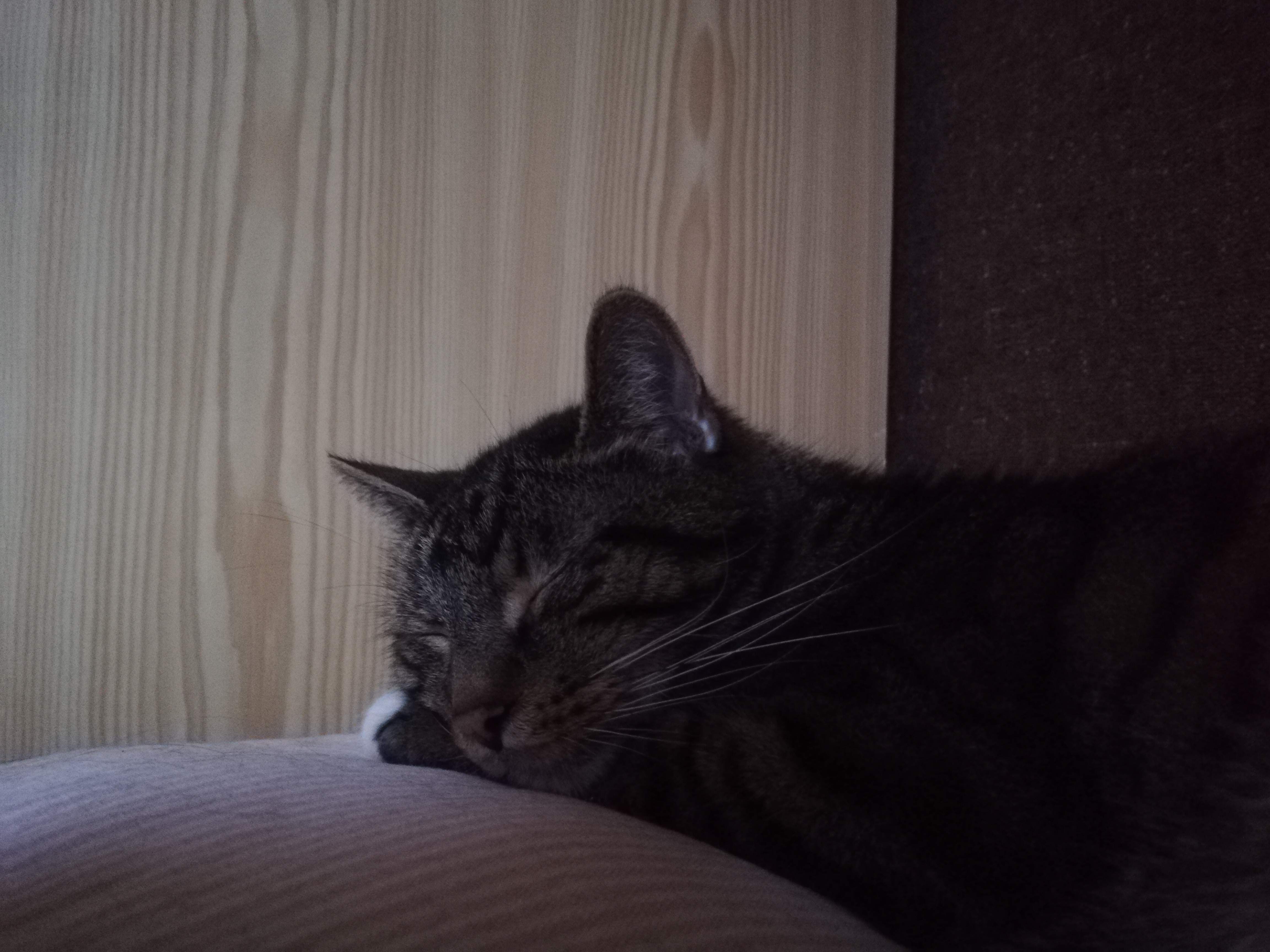 Obudziłam się ze strasznego koszmaru i był przy mnie doktor kotek, przytulił się i mrukał, a teraz śpi na swojej poduszeczce #