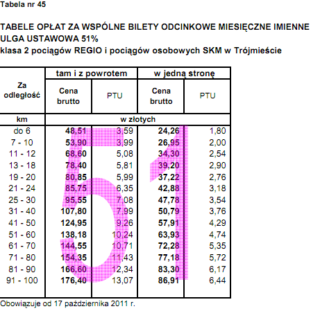 Od poniedziałku drożeją bilety #PR, miesięczny studencki Tczew - Oliwa PR+SKM 107,80 (było 101,59). Widzę też błąd w cenniku, który możnaby wykorzystać. #kolej