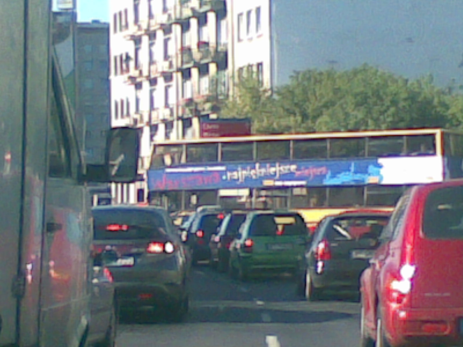 Warszawa najpiękniejsze miejsca. Autobus do zwiedzania stolicy. Stojący w korku na rondzie zawiszy.