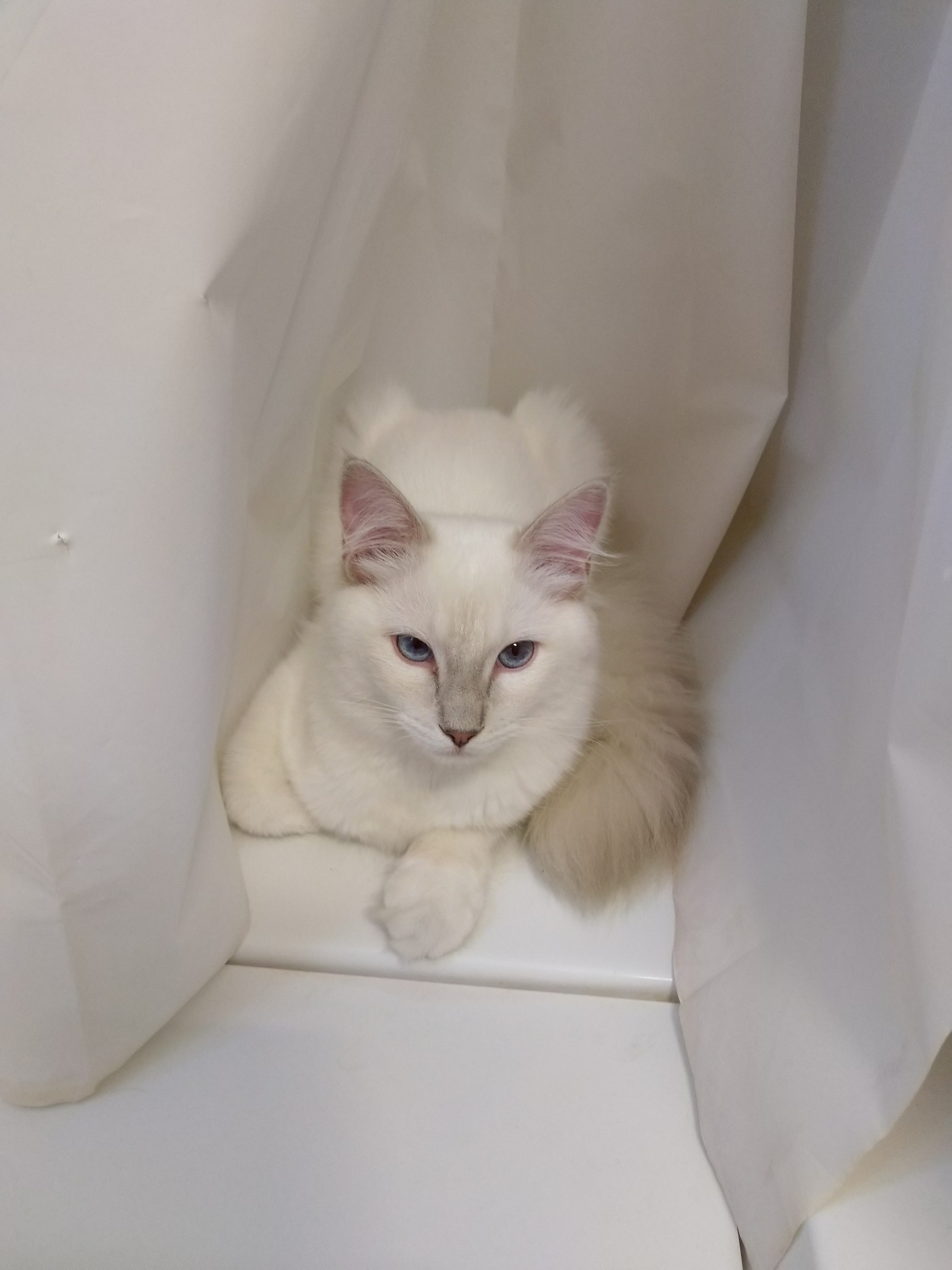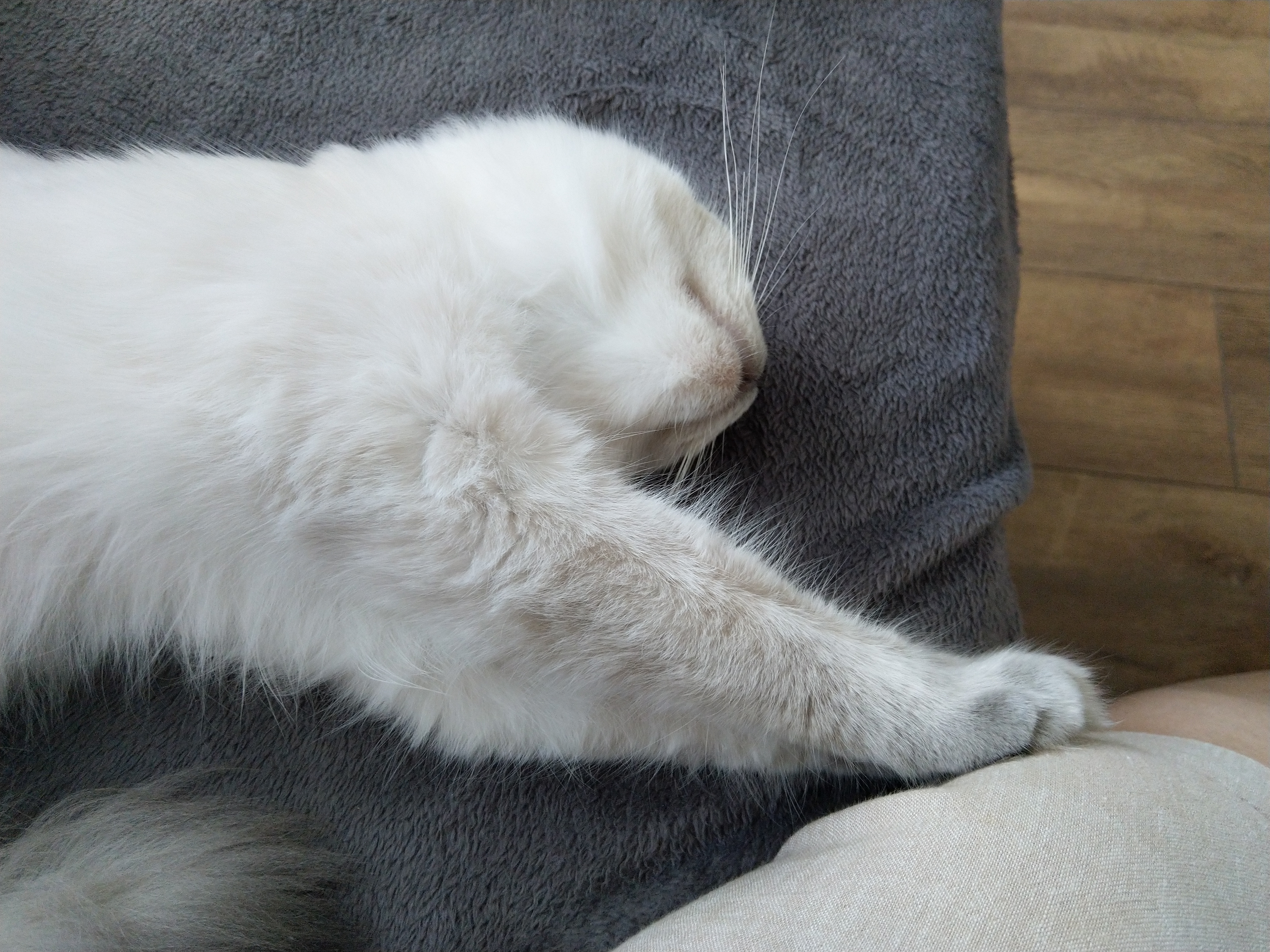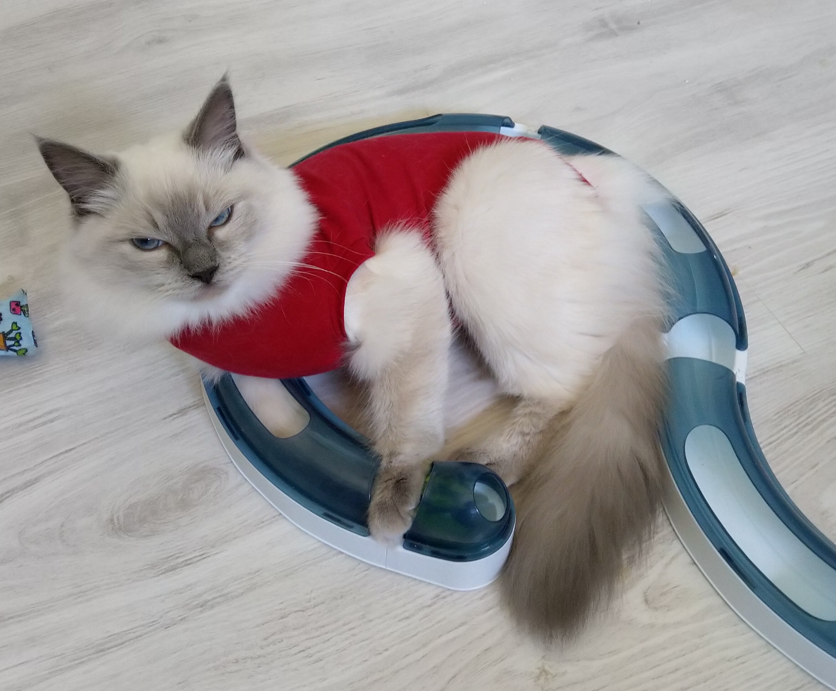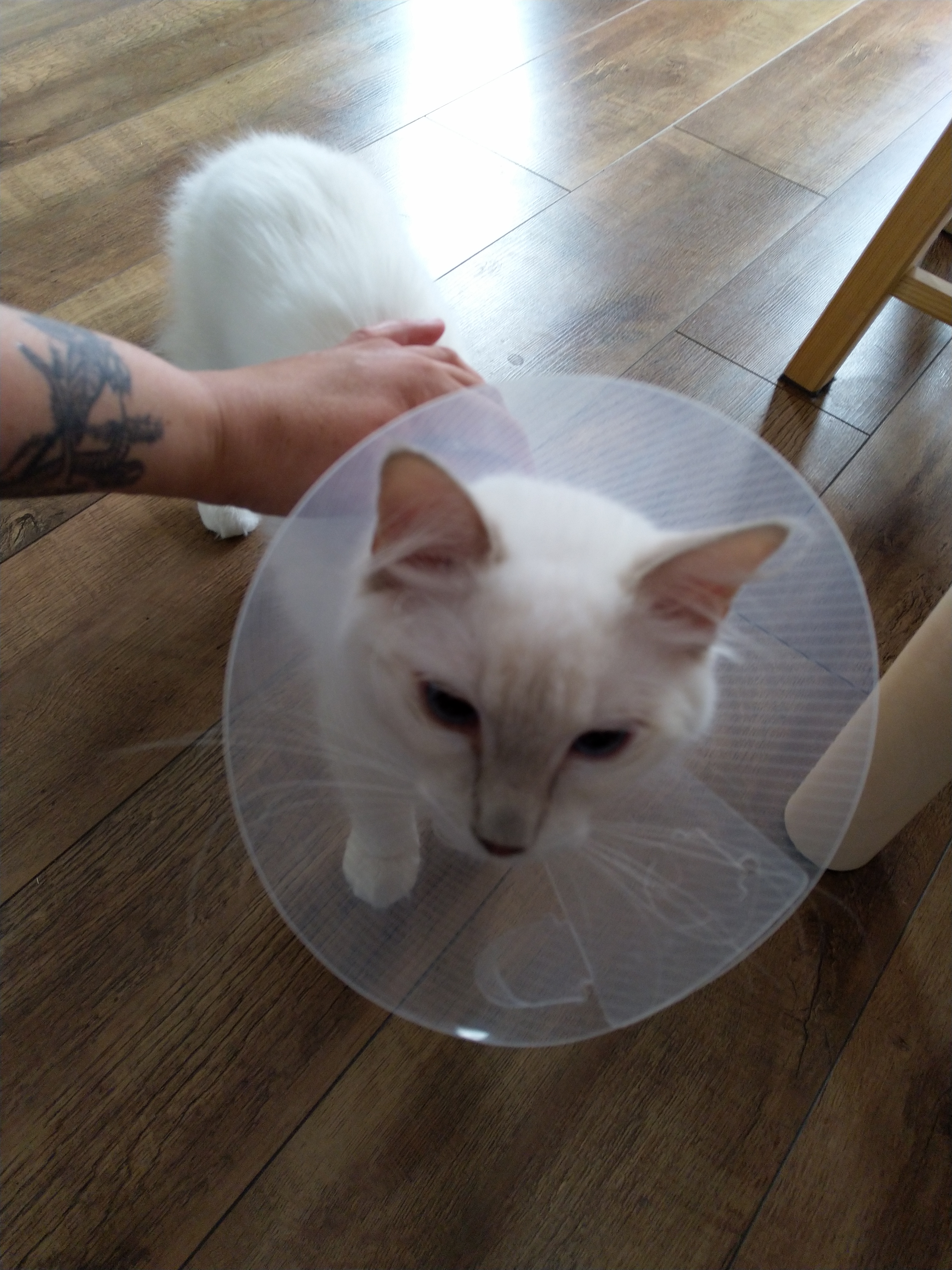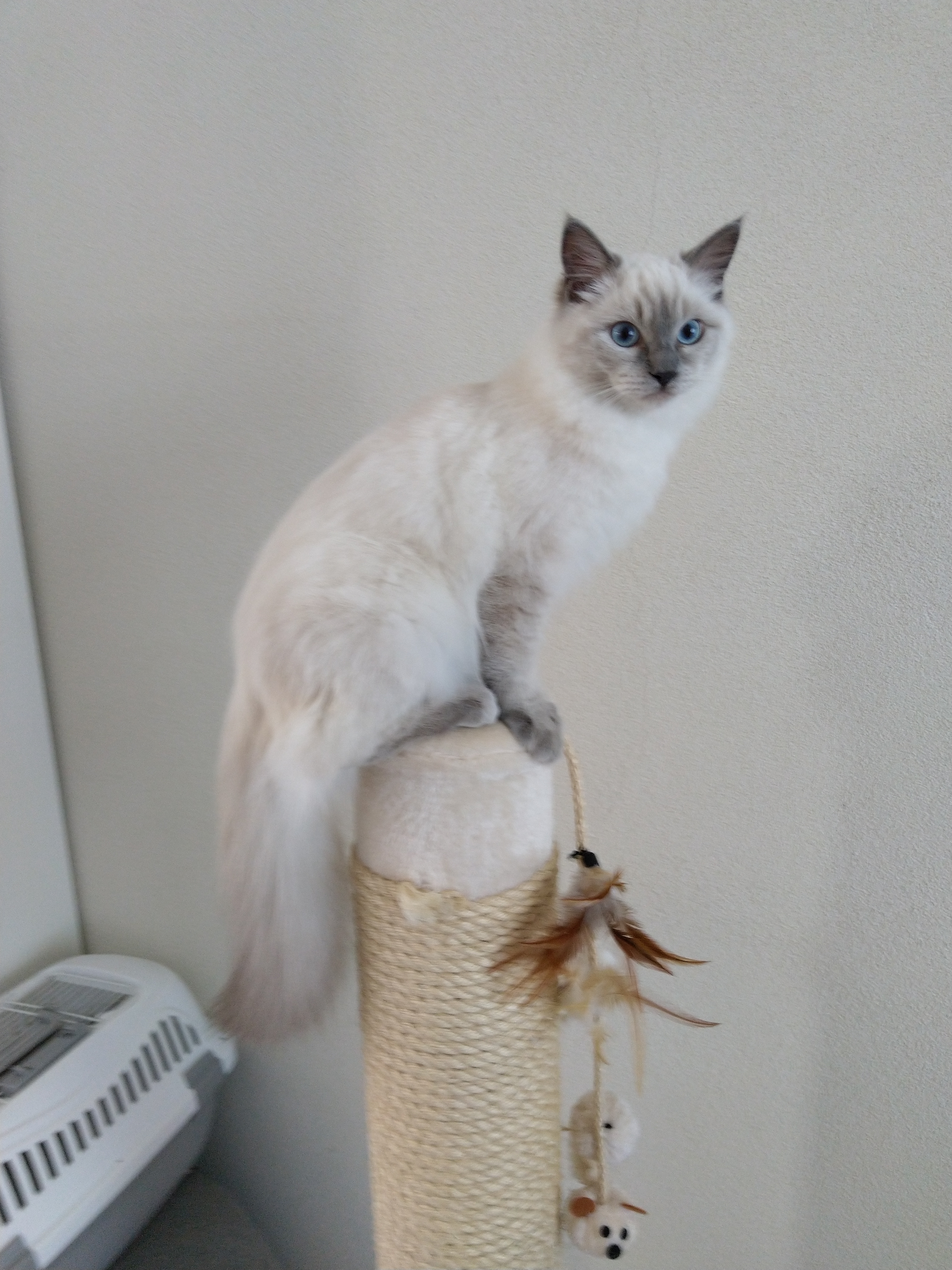 elfette: Kotek jest bardzo niezachwycon. Ale zjadła ładnie, poturlała trochę kulkę, teraz delikatnie próbuje drapać drapak. #puchatepotwory |