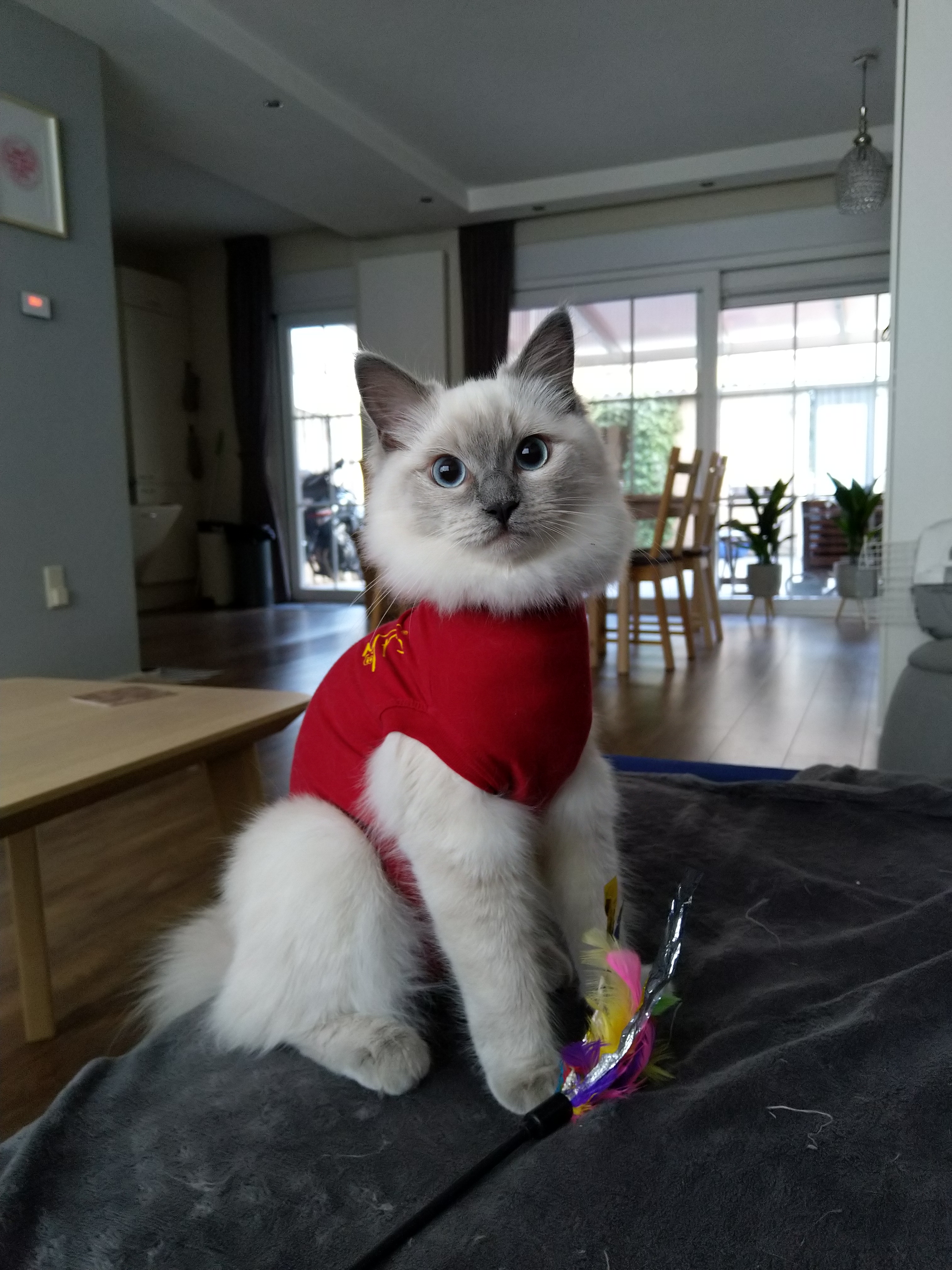 elfette: Minnie odebrana od weta, zdecydowanie nie podoba jej się kubraczek, ale poza tym już wykazuje dziarskosc #puchatepotwory |