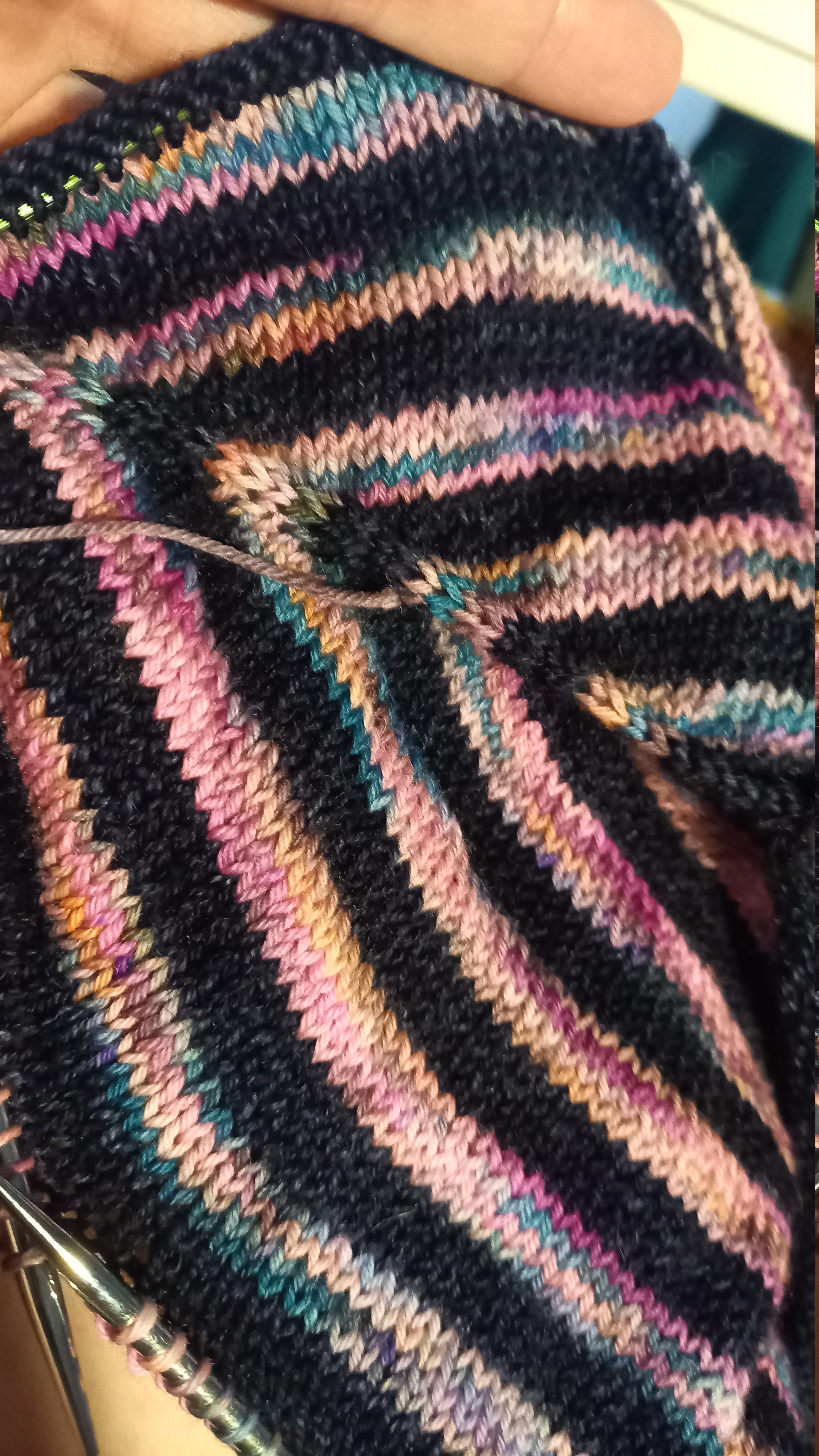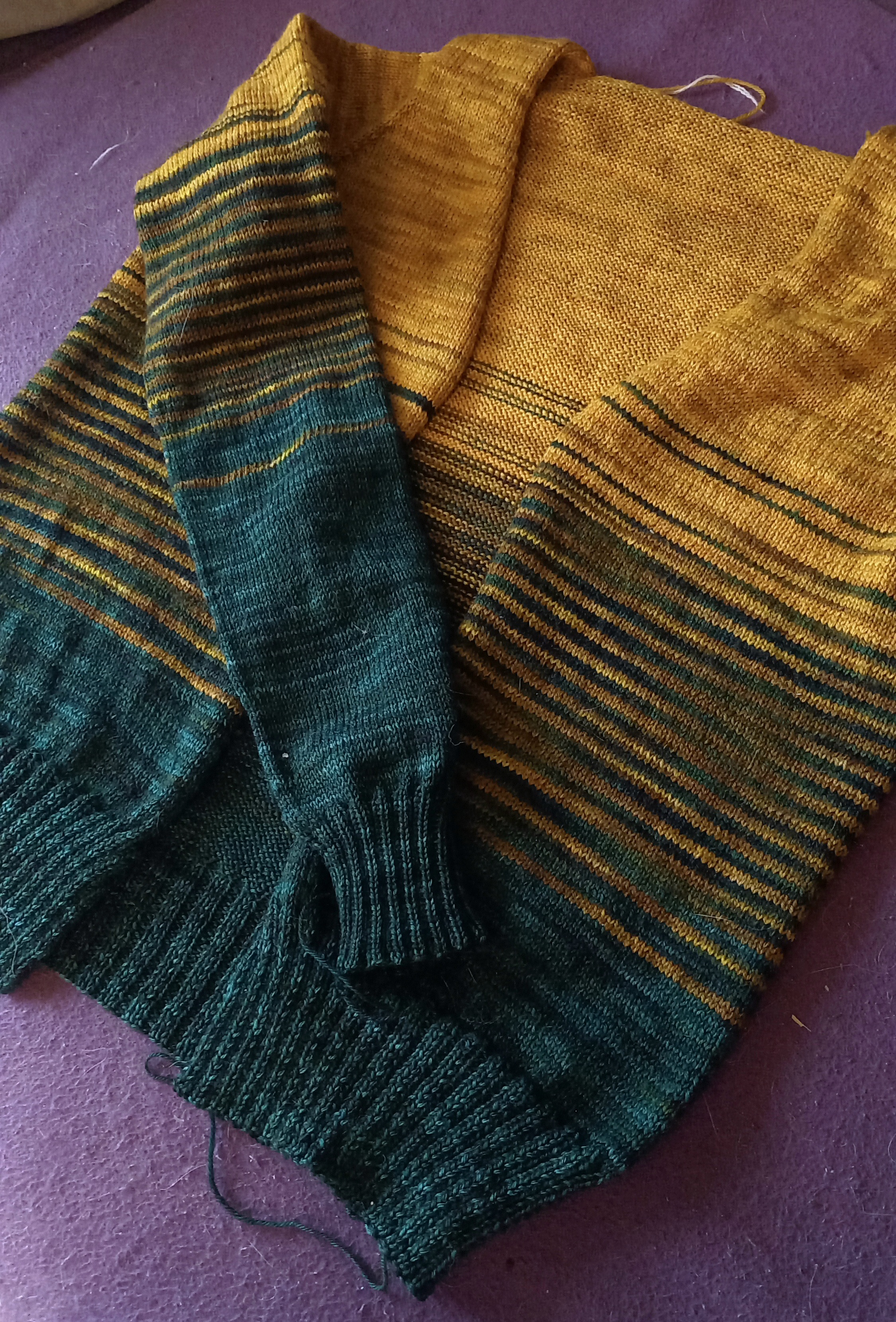 tylko muszę dokupić motek tej ciemnozielonej, bo zabrakło ma listwę guzikową i końcówkę 2 rękawa.