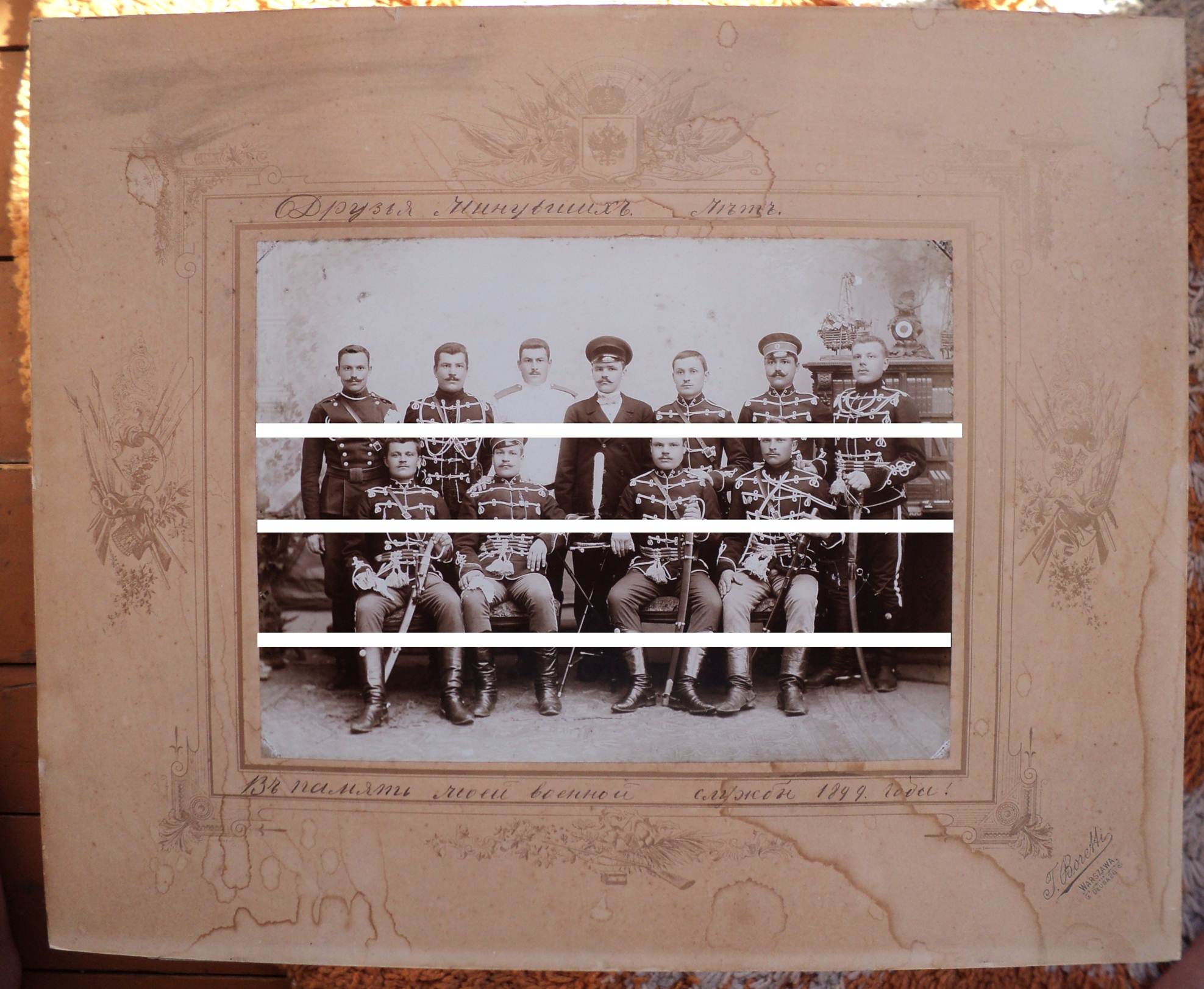 #bry Warszawa-Łazienki 1899. Pożegnalne foto grodnieńskiego pułku huzarów gwardii. Opisano : "Przyjaciele minionych lat. Na pamiątkę mojej służby wojskowej" [forums-su.com] #retrofotorus