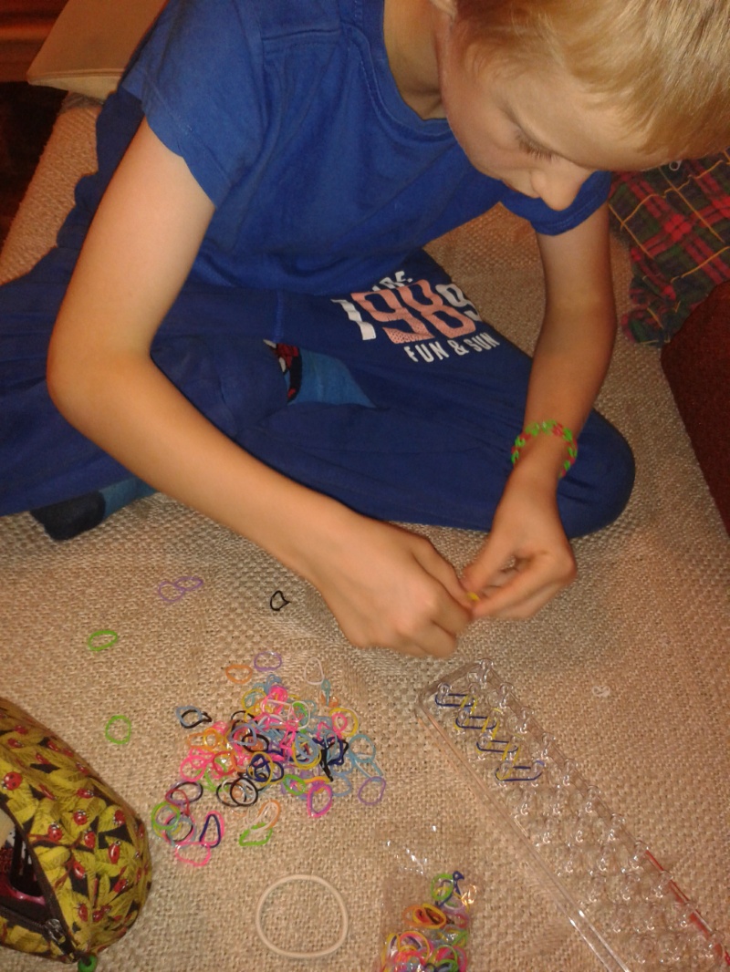 No więc tak. Kupiłam dziecku krosienko i gumeczki i on będzie sobie plótł bransoletki. On w dzień... a ja w nocy. Mwahahaha. #robotki