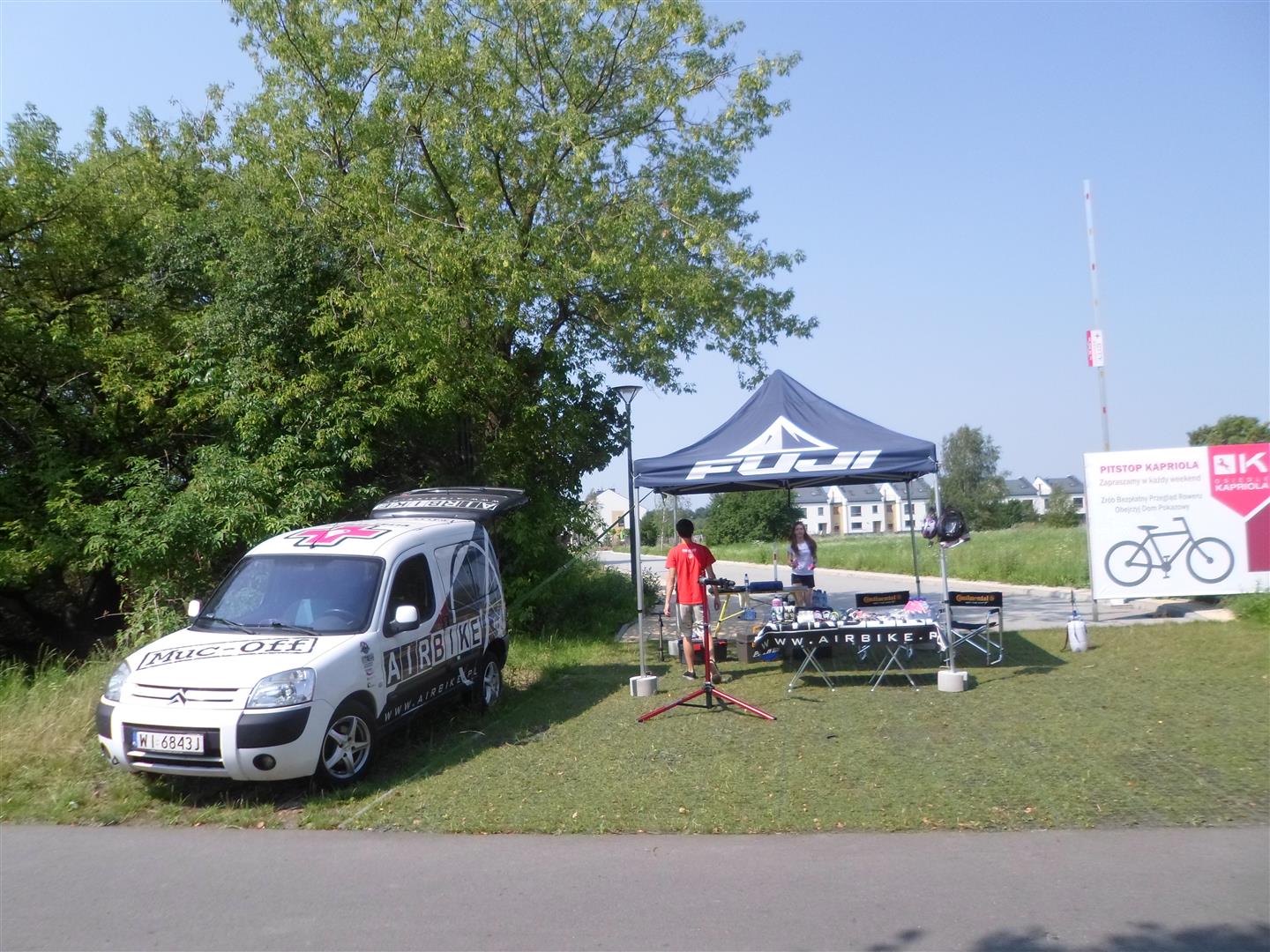 [^yurek55] A na trasie Powsin - Wilanów młodzi serwisanci z firmy airbike zachęcają przejeżdżających #rower.zystów, do zrobienia darmowego przeglądu pojazdów. Nie miałem niestety czasu by się zatrzymać