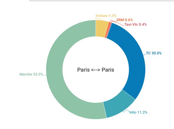 ] dobra, mam to, faktycznie w 1% są jednoślady prócz rowerów oraz taksówki. zdumiewające. (to jest wewnątrz Paryża) #