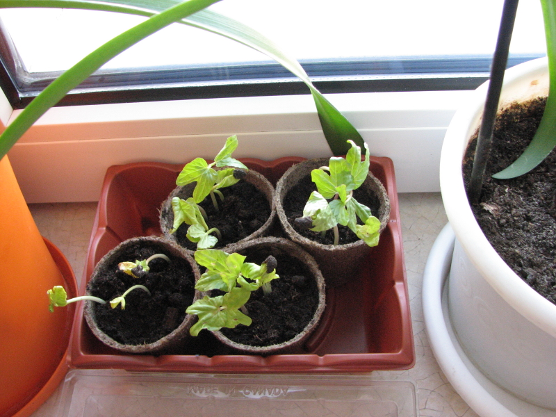 deli: #rozsada Oceniając po kształcie pierwszej pary liści, do early call zaplątał się jeden zwykły I. purpurea. |