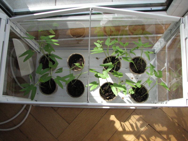 deli: #rozsada Early call w większej szklarni ma się doskonale (co daje mi nadzieję, red picotee po wyjęciu z małej szklarni często zaczynał marnieć), scarlett o'hara też nieźle, choć późniejsze siewki rosną bardzo słabo. |