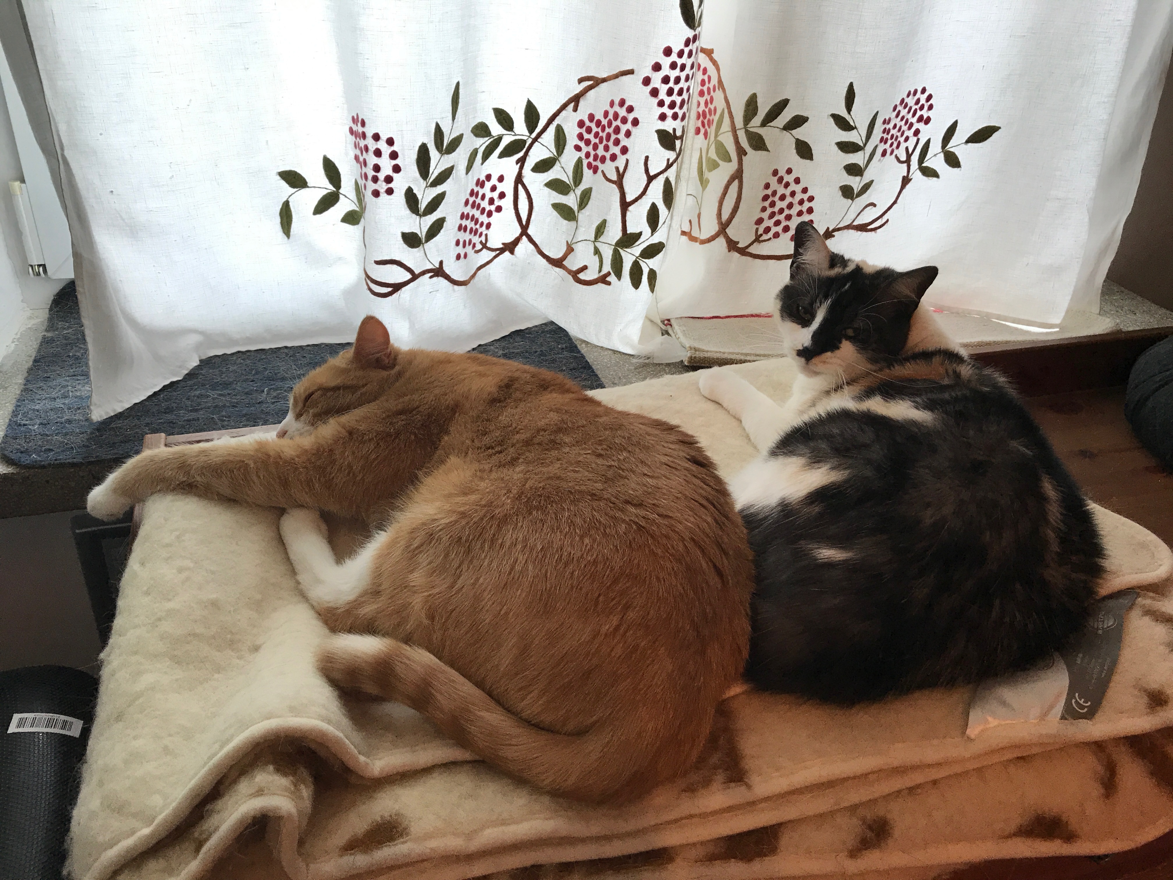 wróciłam do domu i zastałam koty już w jesiennej konfiguracji: w małym pokoju, na grubym kocu, blisko siebie #
