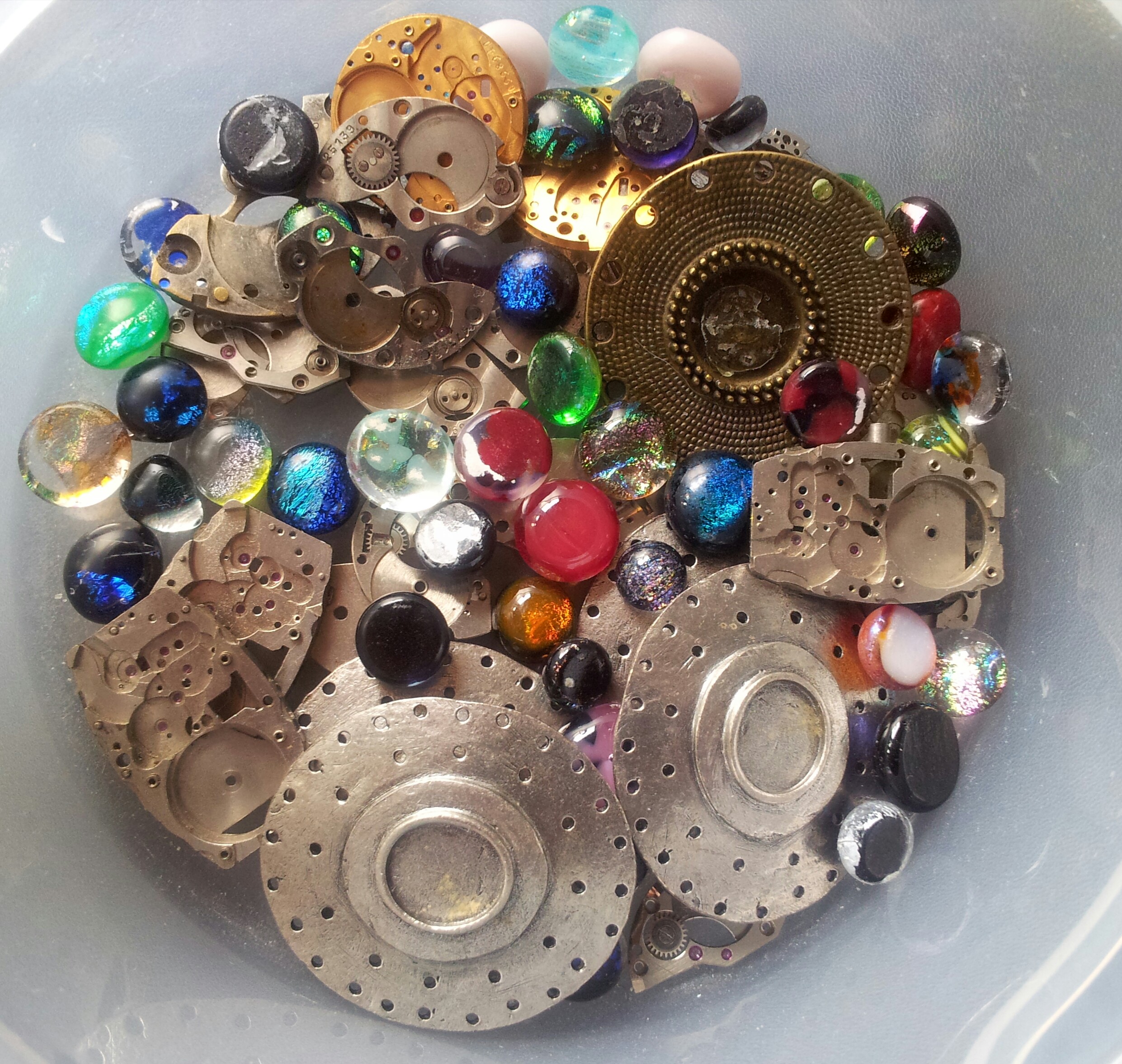 Dzisiaj przyklejam małe kaboszonki do różnych blaszek. #