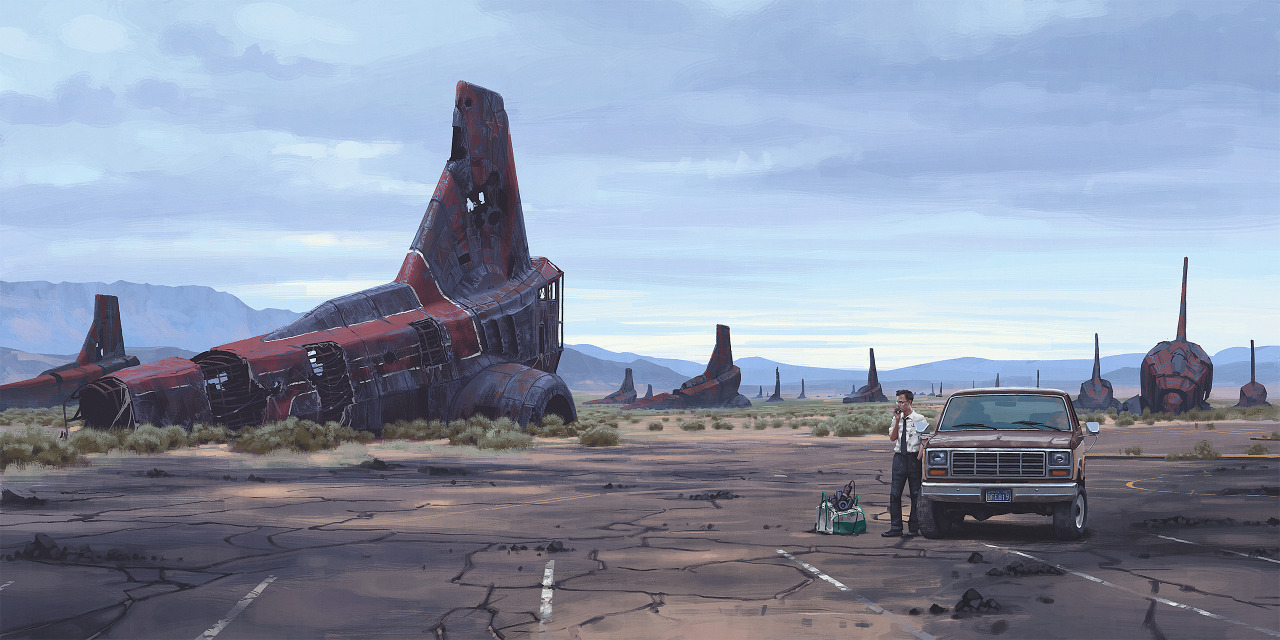 Nowy #stalenhag "Car and Worms, near Amargosa."