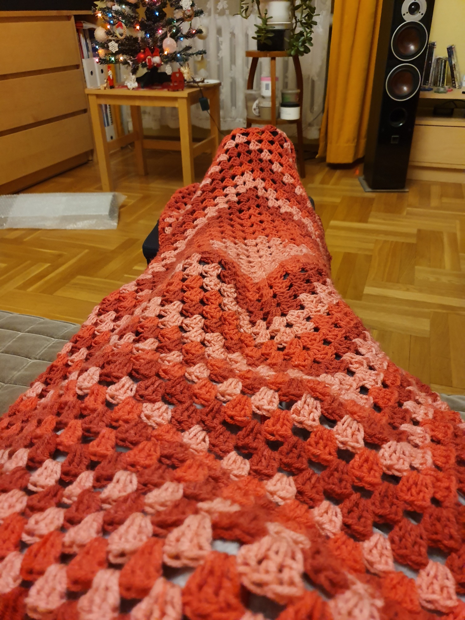 Zatoki dziś bolą trochę mniej (ale też bardziej pilnuję brania przeciwbólowych), a ja tymczasem pod rurzowym kocykiem własnej produkcji - wreszcie skonczyłam! #stanmotka
