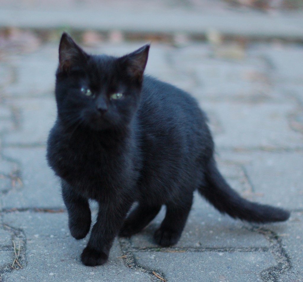 -las do wzięcia trzy małe kotki - dwa czarne, jeden pręgaty. Czarne mają futerka z jedwabiu, a pręgacz nie chciał się głaskać.