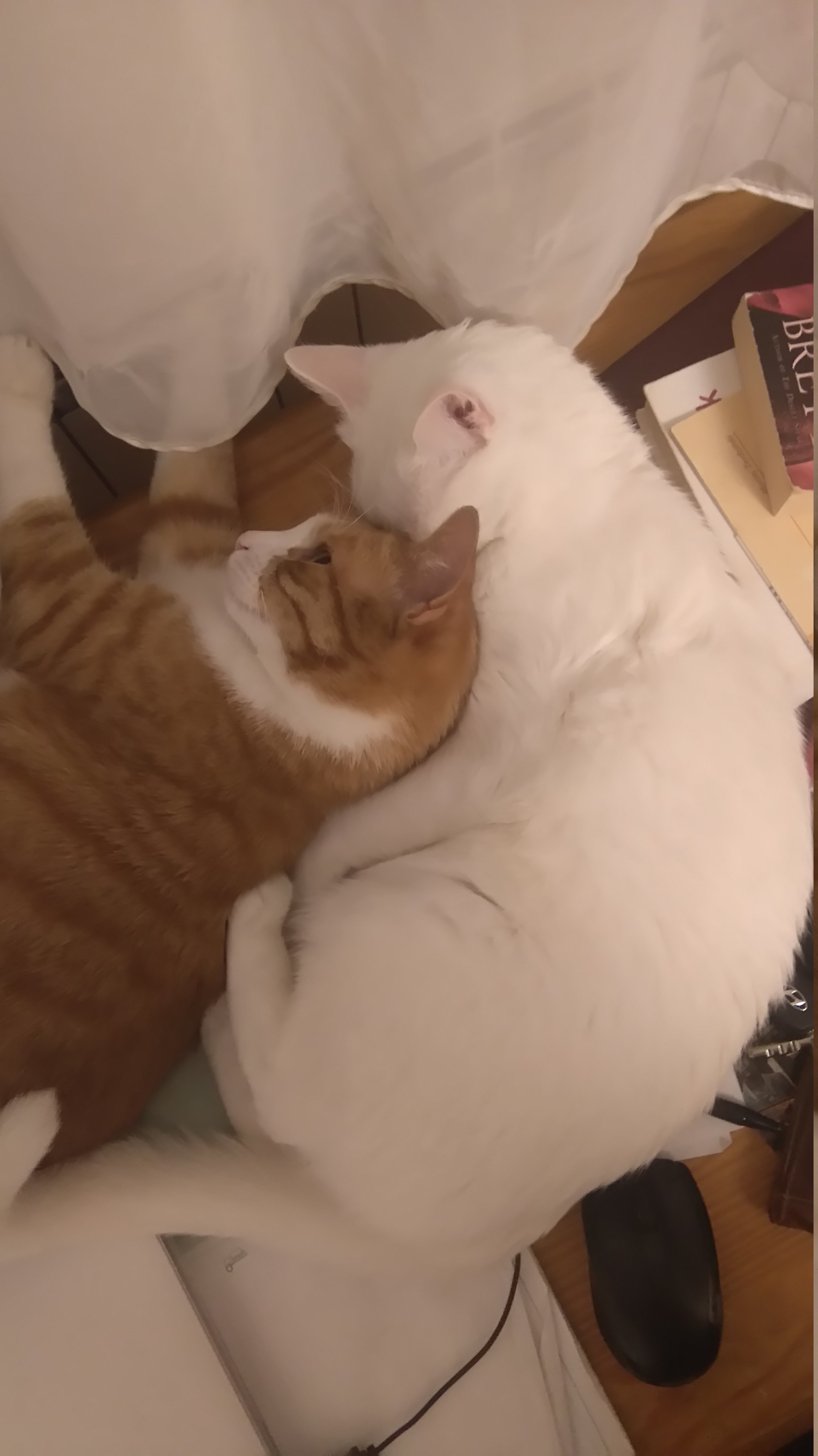 [^kerri] U mnie śpią oba #taniedranie. Imbir na głowie, a Irbis w nogach.