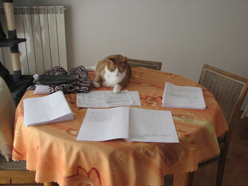#pokakota #taniedranie Imbir pomaga mi sprawdzać matury próbne (jeszcze tylko 10 rozprawek i listów. Z klasy, która teoretycznie jest niezła, więc powinno pójść szybciej).