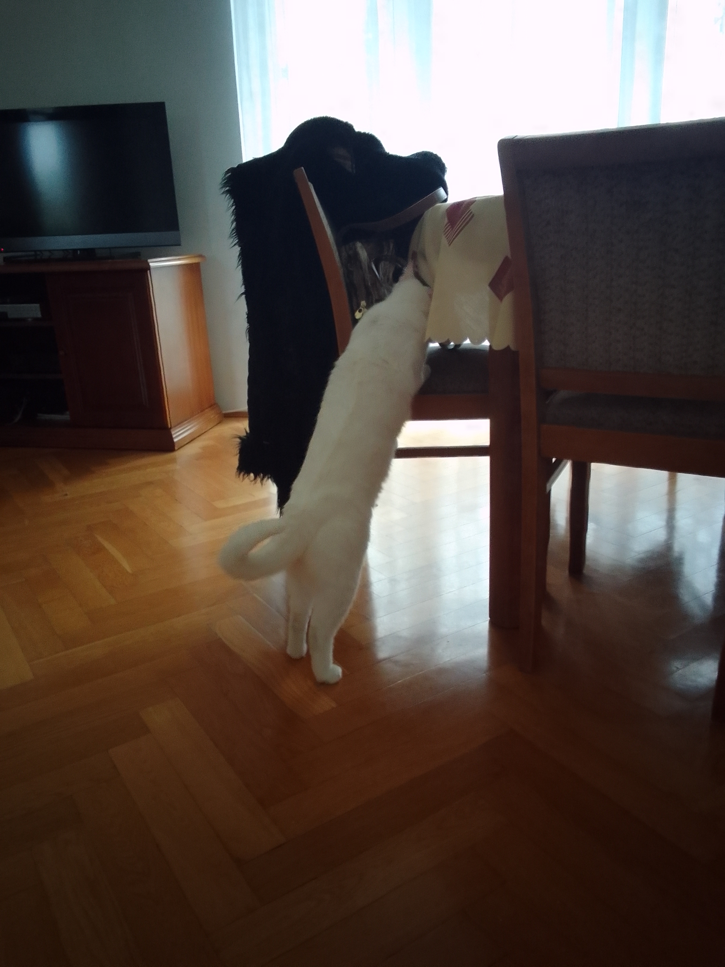 Sąsiadka zza ściany zaczęła nucić. #taniedranie Irbis najpierw rozejrzał się zdenerwowany, a później zeskoczył mi z kolan i poszedł zagryźć kumpla.