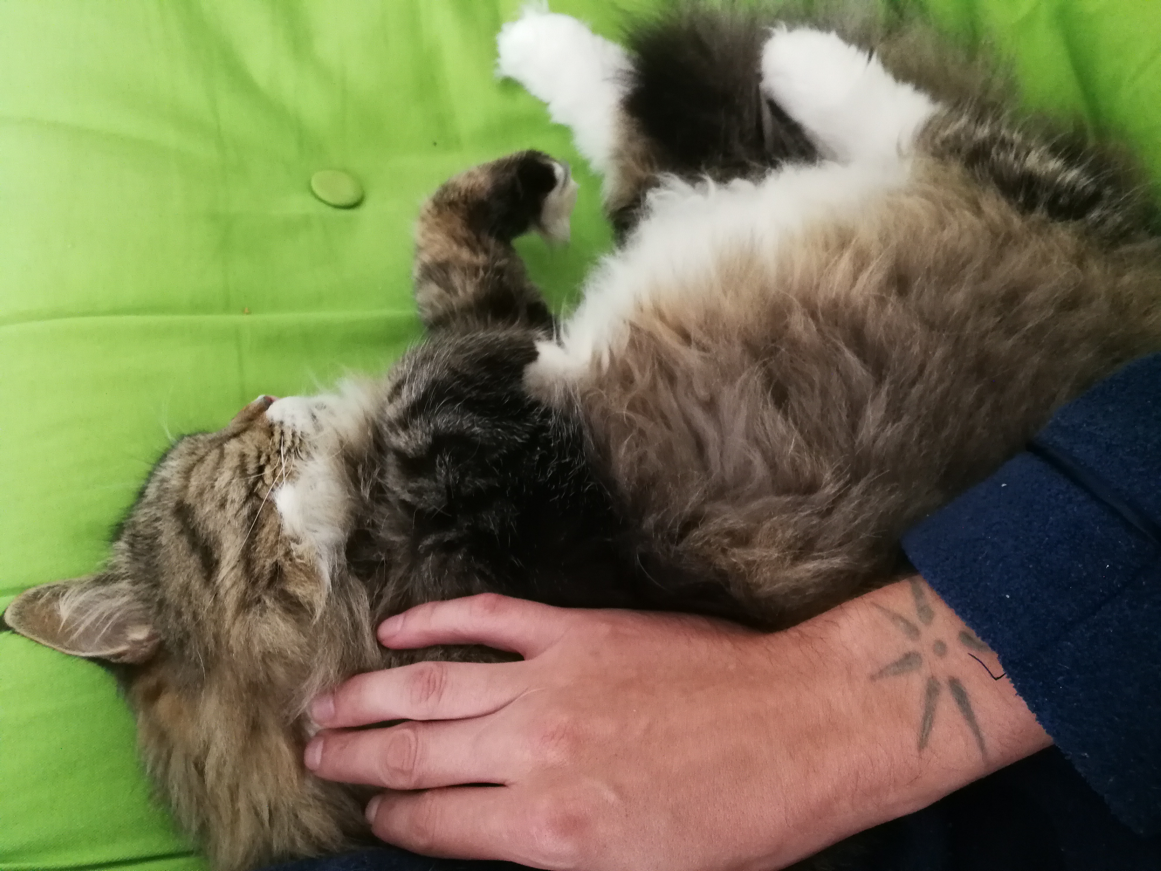 Przyszło takie, nakrzyczalo na mnie, potem się wtulilo I śpi. Mały, puchaty kotecek. #