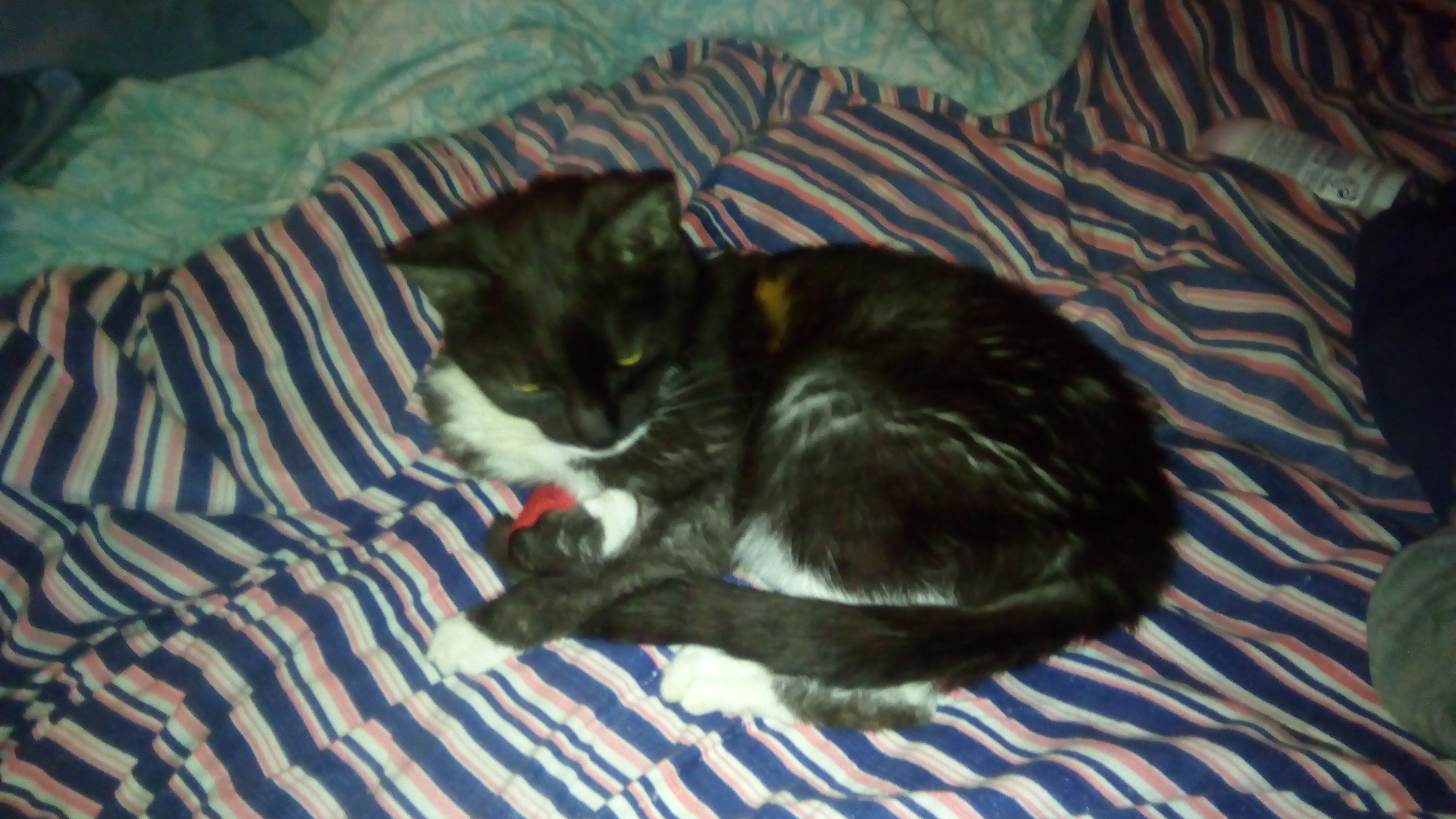 malalai: #Tulva to jest waleczna kicia, jak ją wzięłam, to była dwumiesięczną kulką, która ledwo widziała i oddychała przez koci katar, wet ją cudem wyciągnał (nie mój ojciec, jego kolega, nie mieszkałam wtedy w wawie) |