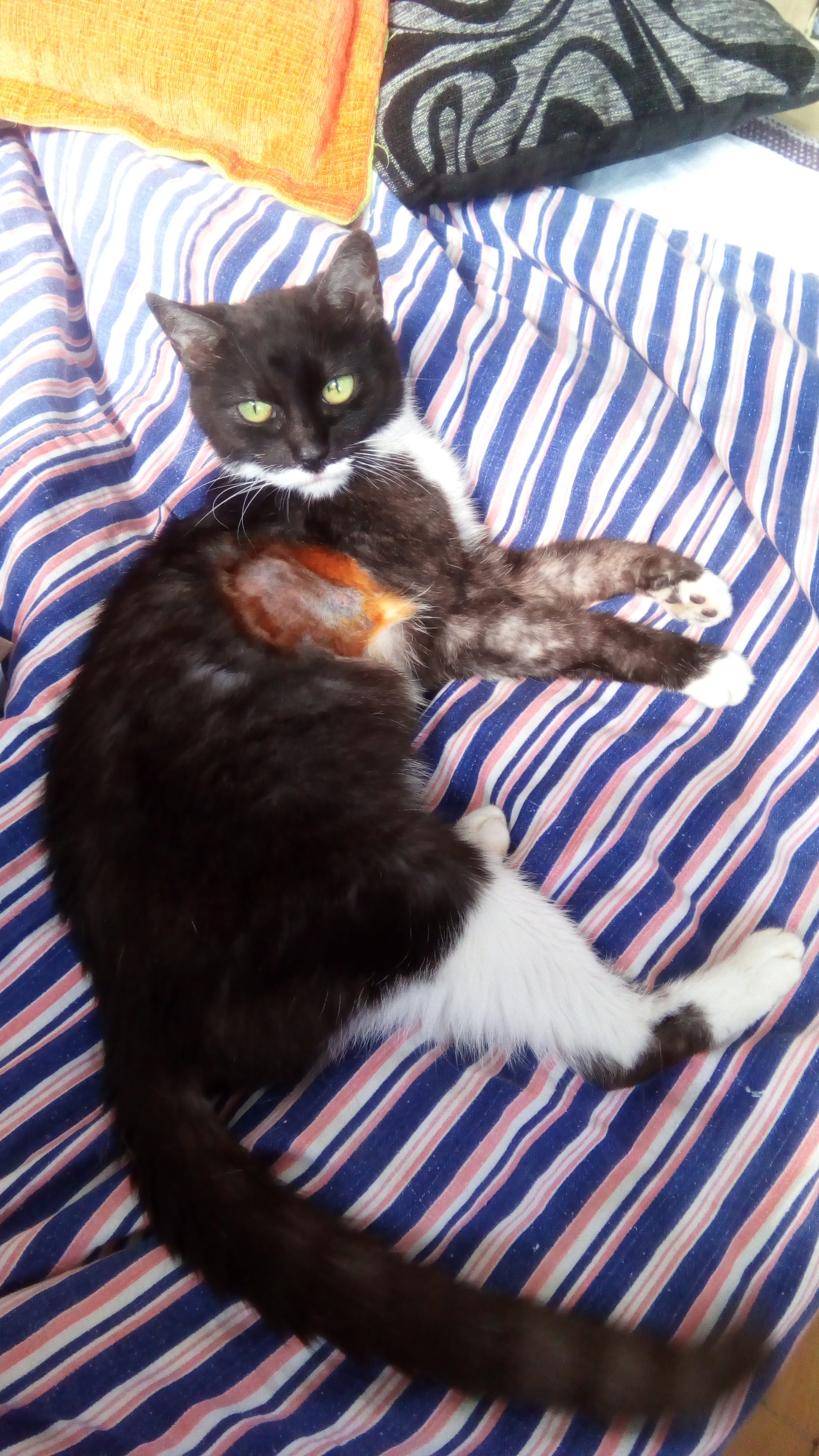 I wenflon już wyciągnięty. Biedna, boczki wygolone, przednia lapka po wenflonie, tylna po pobraniu krwi dziś. Ale kotek w dobrym nastroju i dużo gada:) #Tulva #pokakota |