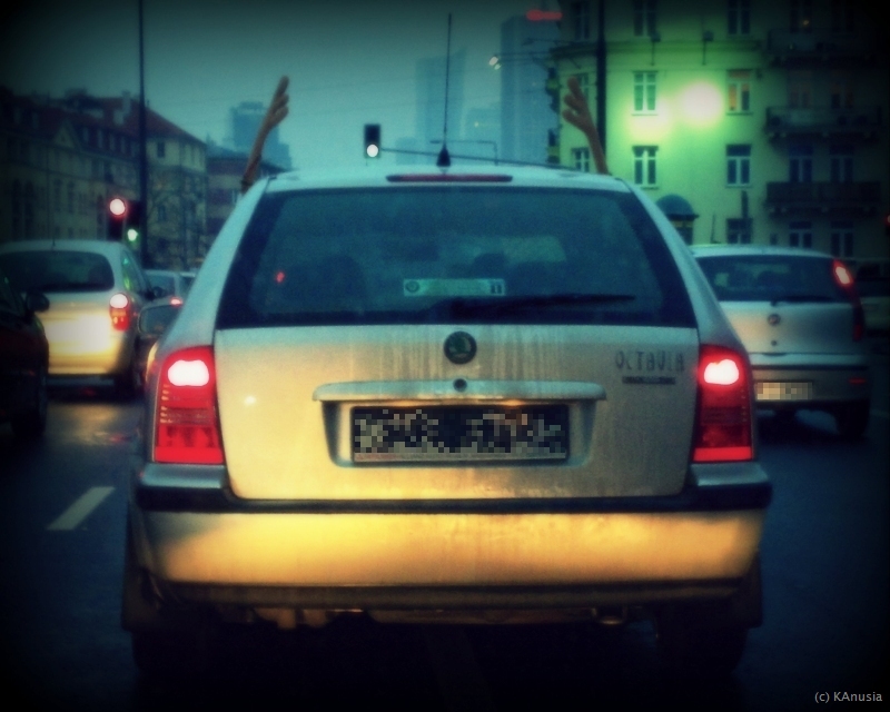 kanusia: Stałam dziś na światłach obok zdezelowanego auta, którego kierowca wyglądał jak sterany życiem Jezus. Za to na masce była naklejka z Latającym Potworem Spaghetti... #sprzecznesygnały #urokiwarszawy |