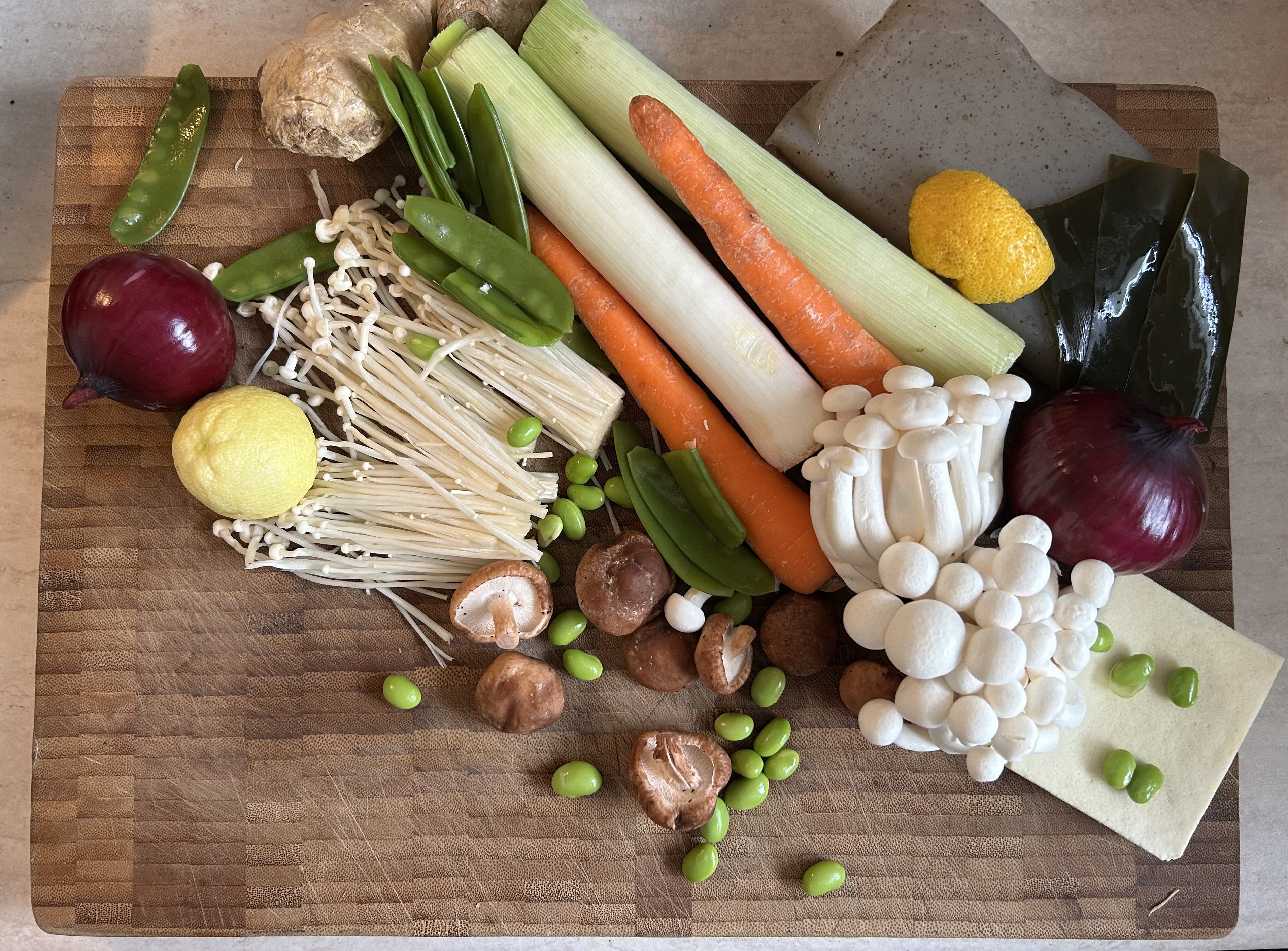 dziś #warzywka i grzybki różne: shimeji enoki shiitake konnyaku konbu tamanego yuzu edamame kinusaya ninjin negi shōga