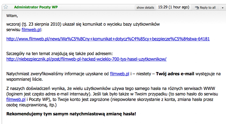 ^niebezpiecznik a wiecie, że #WP rozesłała informację z linkiem do was #filmweb