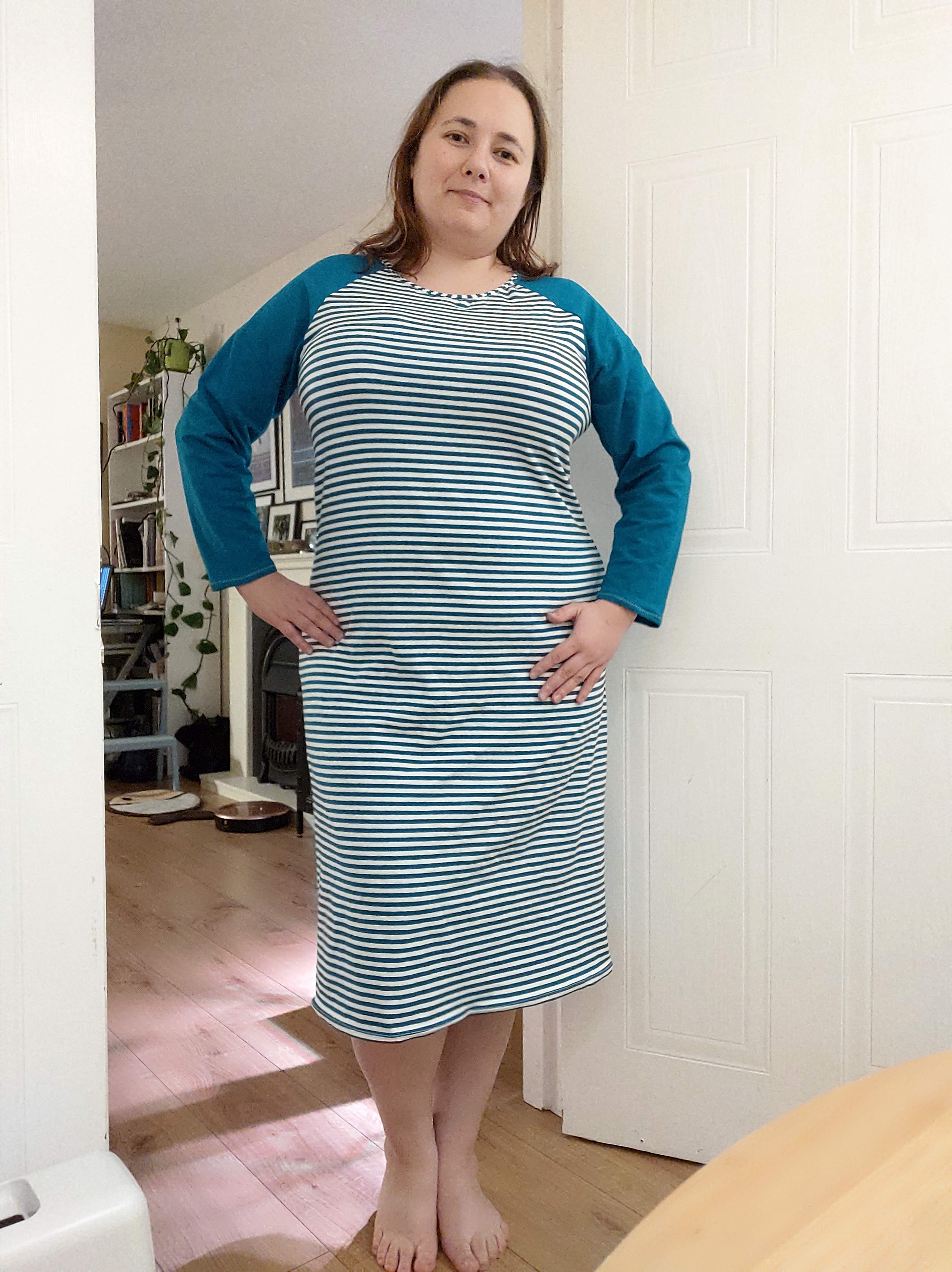 ochdowuja: Gotowe! Nowa koszula nocna :) to pasiaste to resztka :) #wujowaczwaczka Mniej niż jedno popołudnie i jeszcze musiałam część wykroju wykminić sama, bo to na bluzkę jest. |