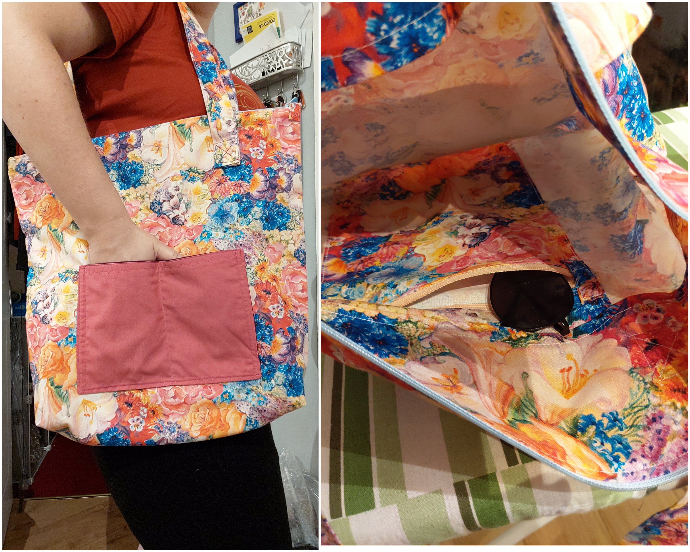 ochdowuja: Gotowa! 40x35 cm, do 8cm głębokości, zapinana na zamek, z przodu otwarta kieszonka na klucze, chusteczki itp, a w środku kieszeń na zamek, w której zmieści się nawet wielki portfel lub smartfon. #wujowaszwaczka |