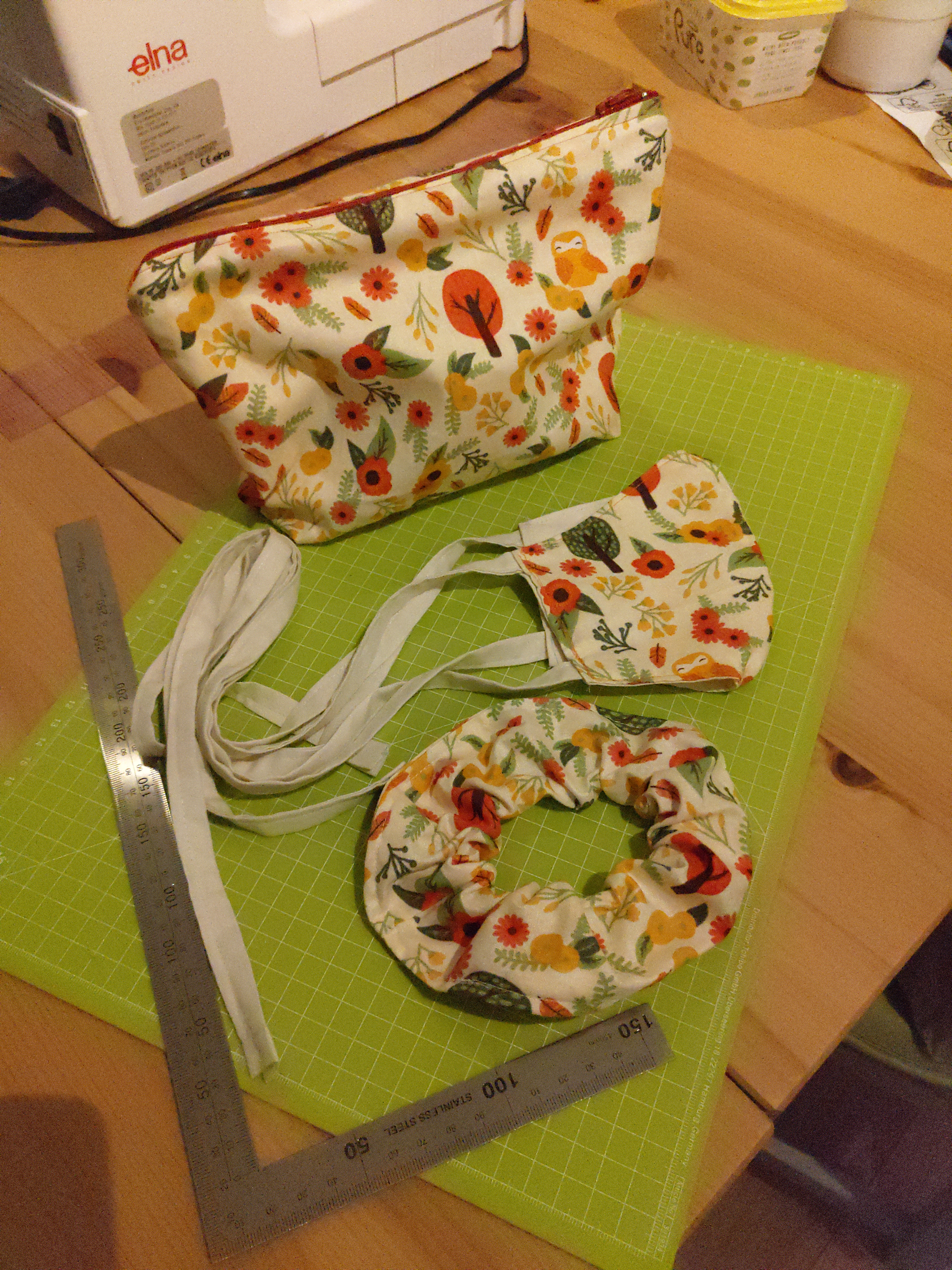 ochdowuja: A z innych projektów, to postanowiłam zawalczyć o maksymalne wykorzystanie jednego kawałka materiału i po masce i kosmetyczce przyszła pora na scrunchie. Projekt nadal trwa ;) #wujowaszwaczka |