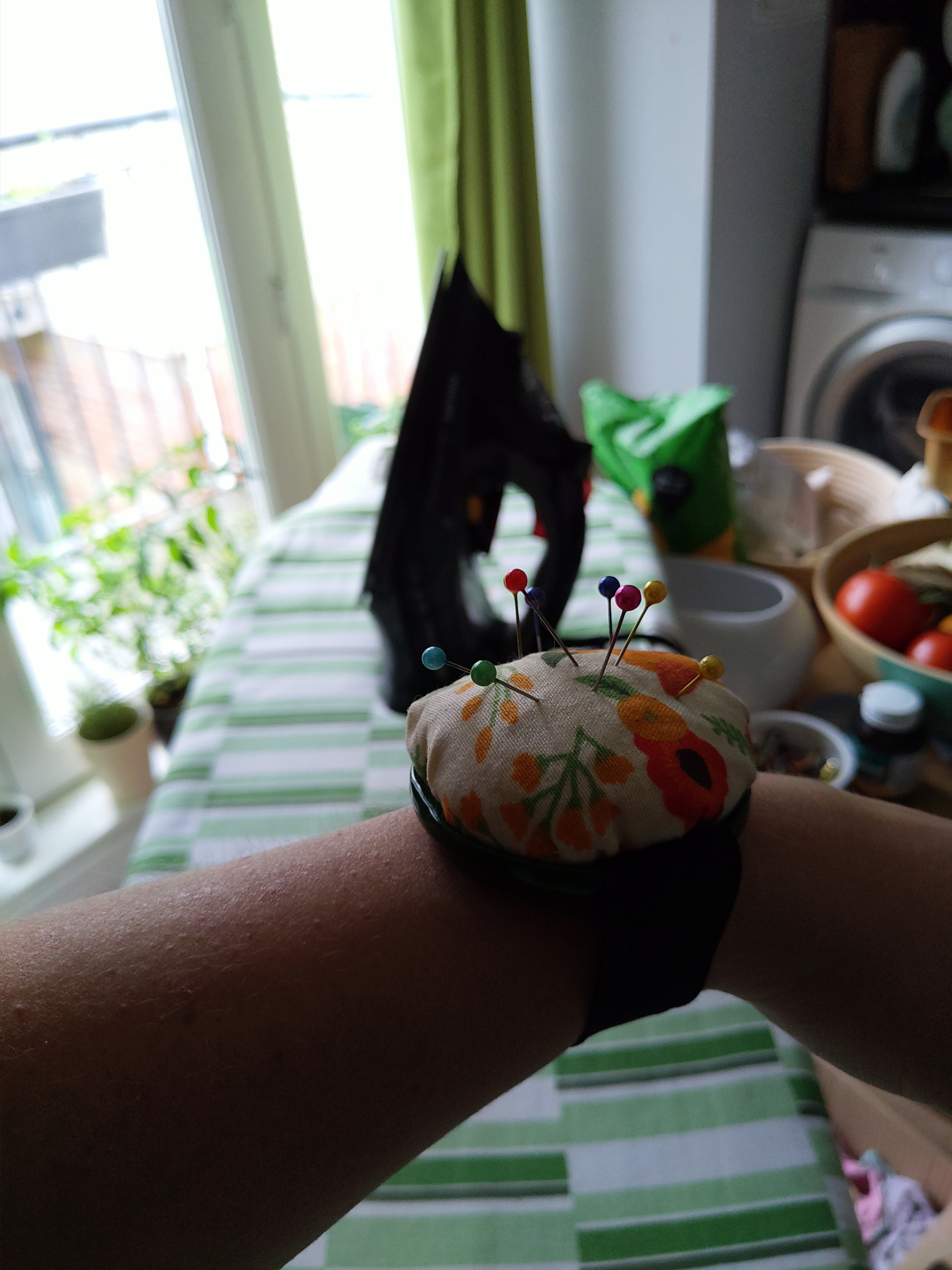 ochdowuja: Kontynuując akcję z maksymalnym wykorzystaniem materiałów, zrobiłam sobie taką o poduszeczkę. Wypchane ścinkami, pokrywka od słoika po czymś tam, gumka ze starych legginsów :) #wujowaszwaczka |