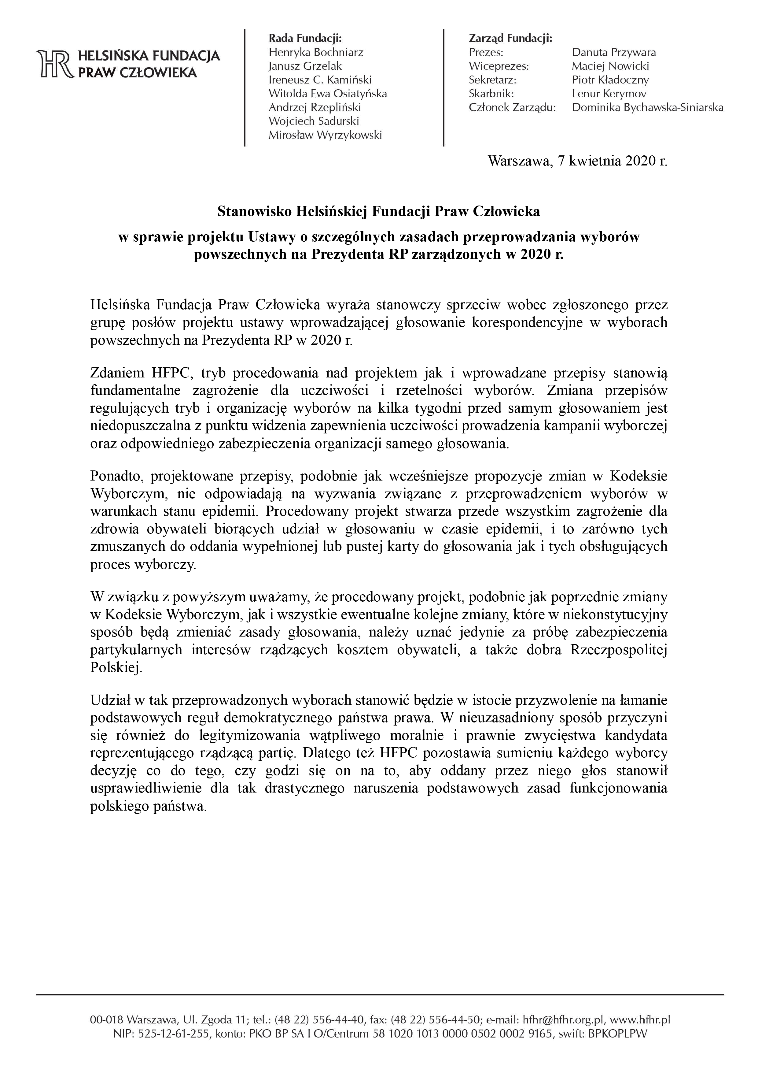 Stanowisko Helsińskiej Fundacji Praw Człowieka w sprawie #wybory.