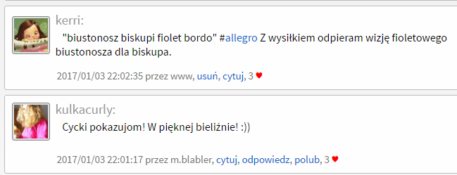 entuzjastycznie reaguje na biskupie cyck^ biustonosze ;)