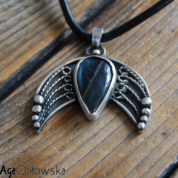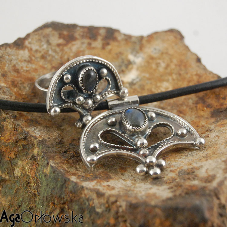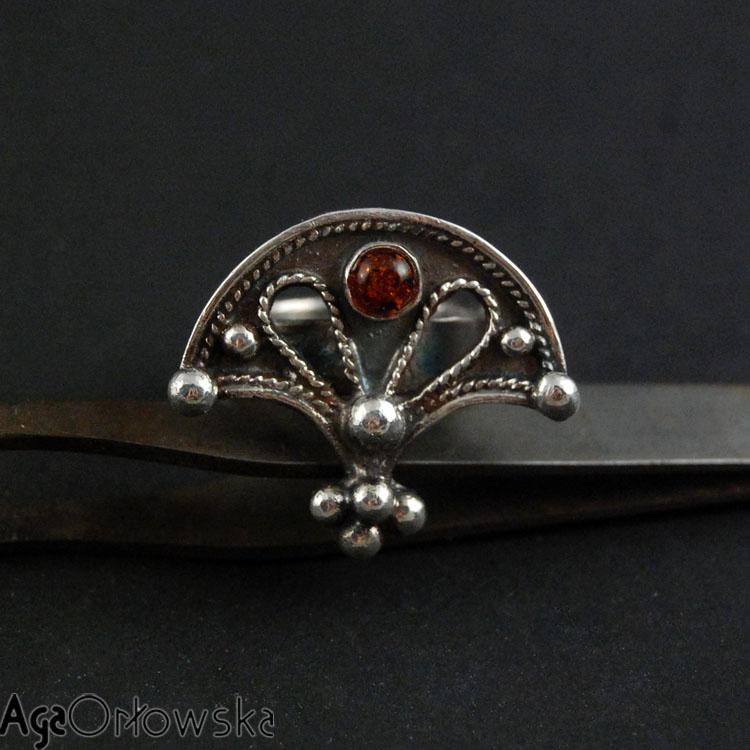 ] lunulowy pierścień z bursztynkiem