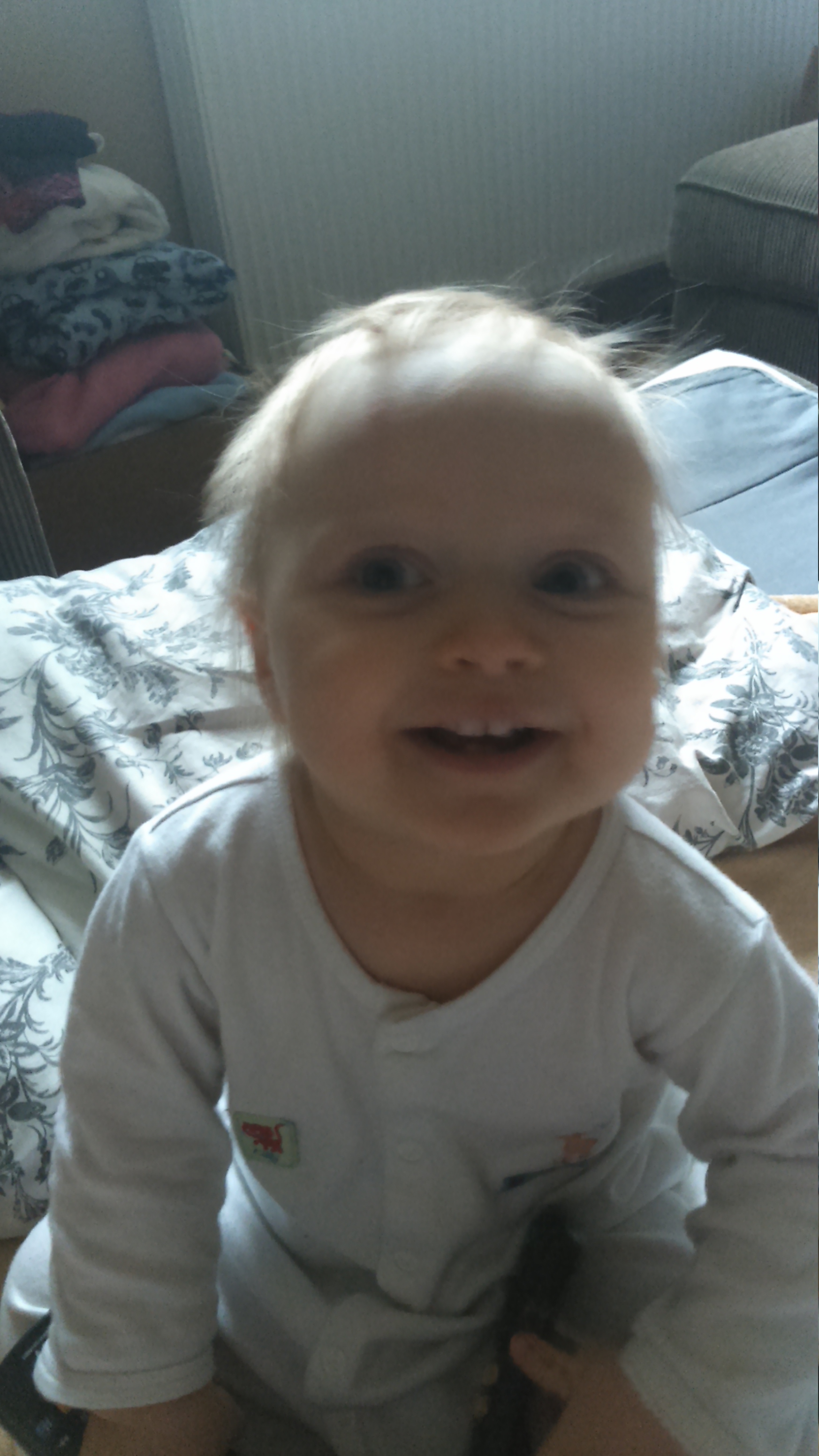 bajka: Matka dzieciom po harataniu w gałę jest lekko nietomna i rozwichrzona. Tu na tle ukochanej czarnej tapety w przedpokoju. |