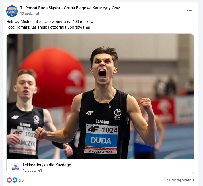 Oraz pochwalę się nie swoim sukcesem, na tym samym stadionie na którym biegam trenuje halowy mistrz polski U20 w biegu na 400m [www.facebook.com] #bieganie