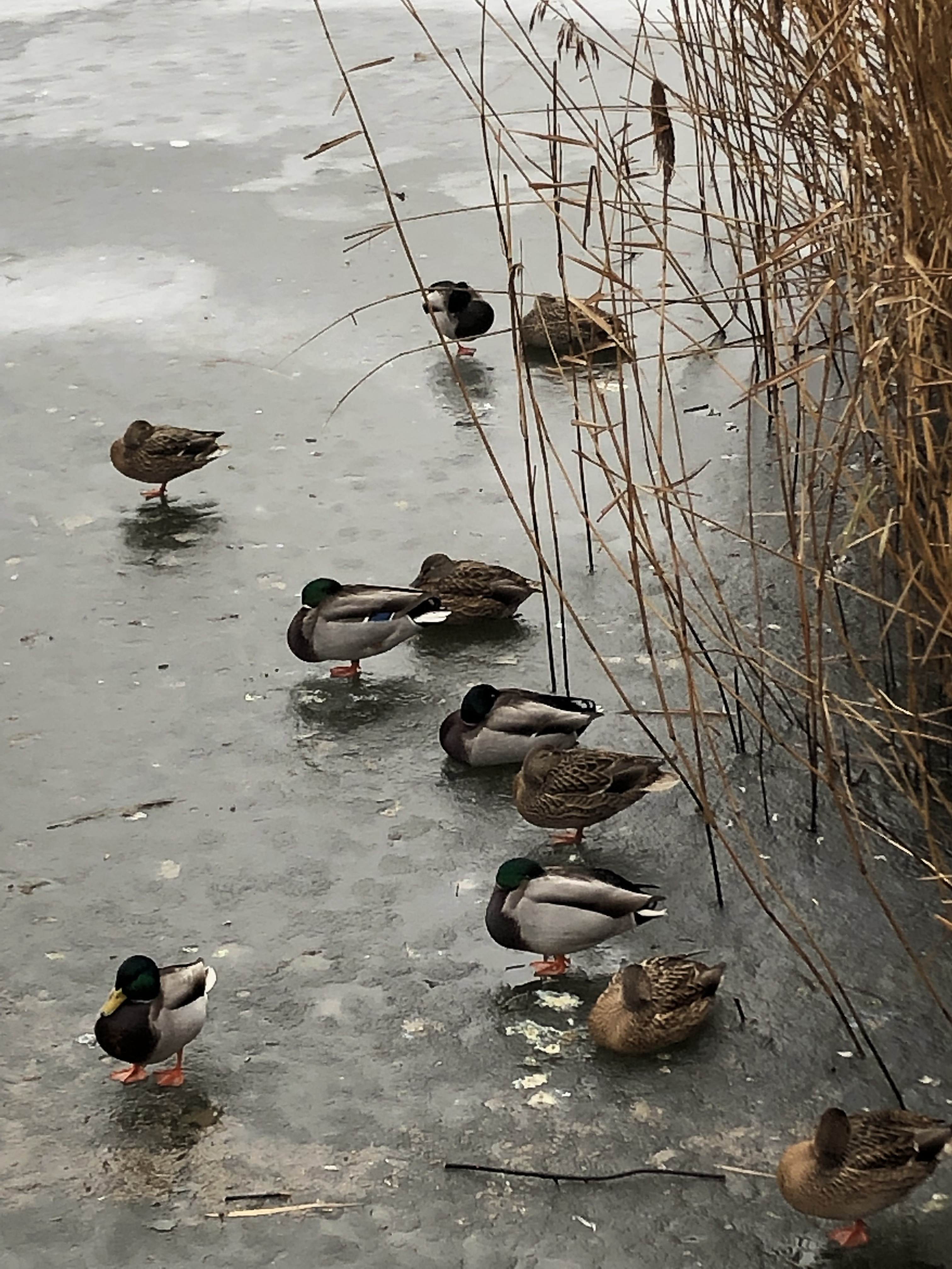 A w parku kaczki parkują na lodzie