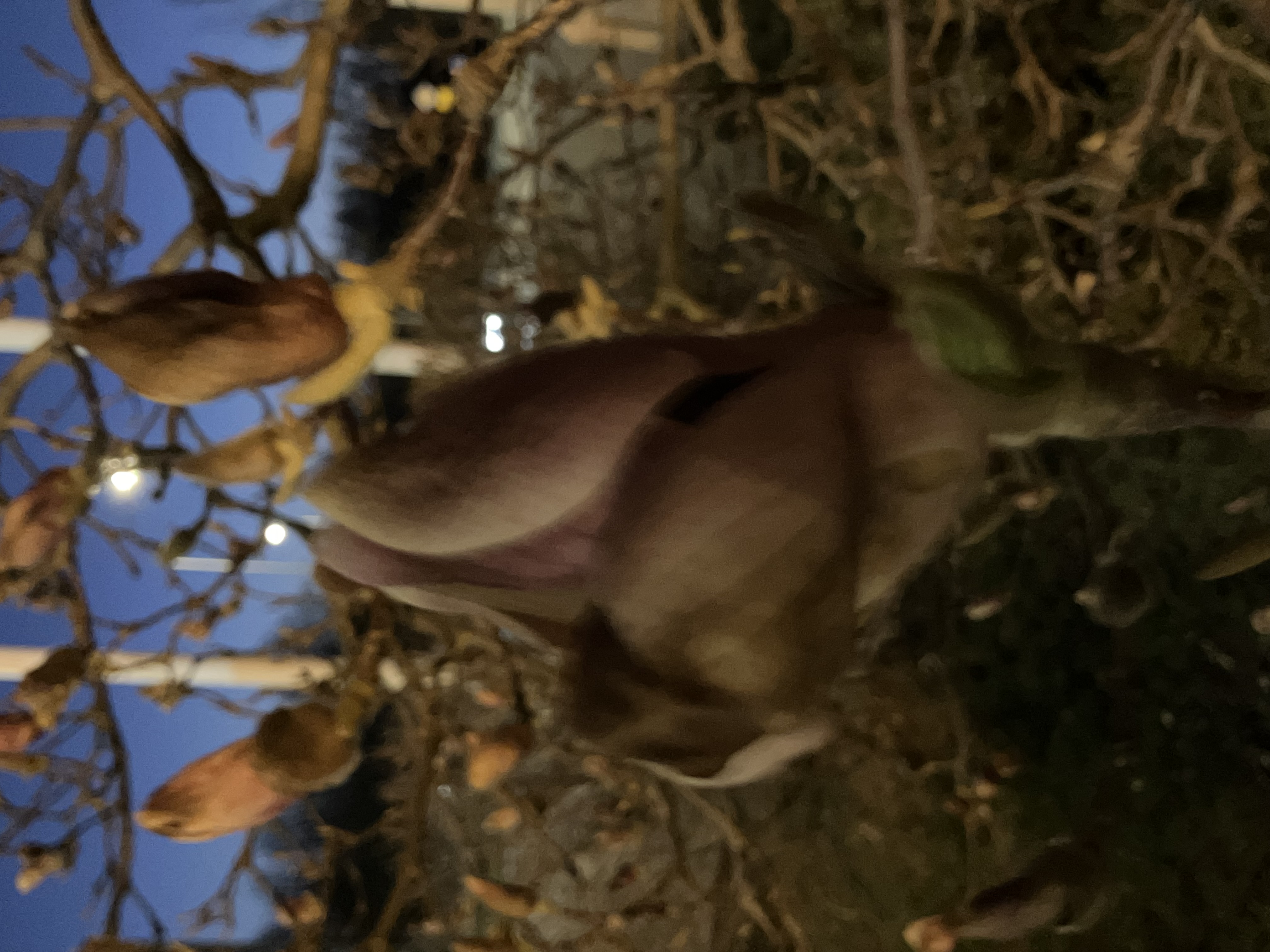 Magnolie pod remizą wieczorową porą