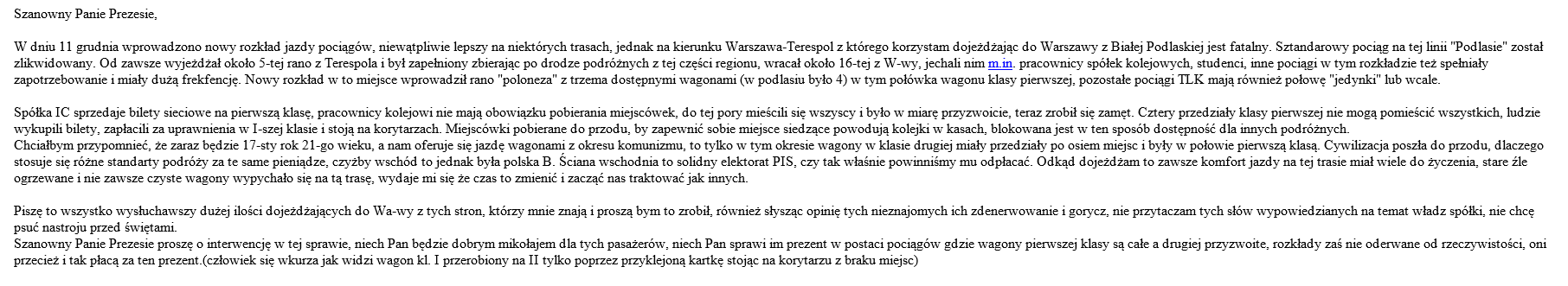 co za bezczelny typ... czy możemy mu odpisać, że to jest dobry moment, żeby pracownicy kolejowi zrezygnowali z wykupu uprawnień na klasę pierwszą na rok 2017?