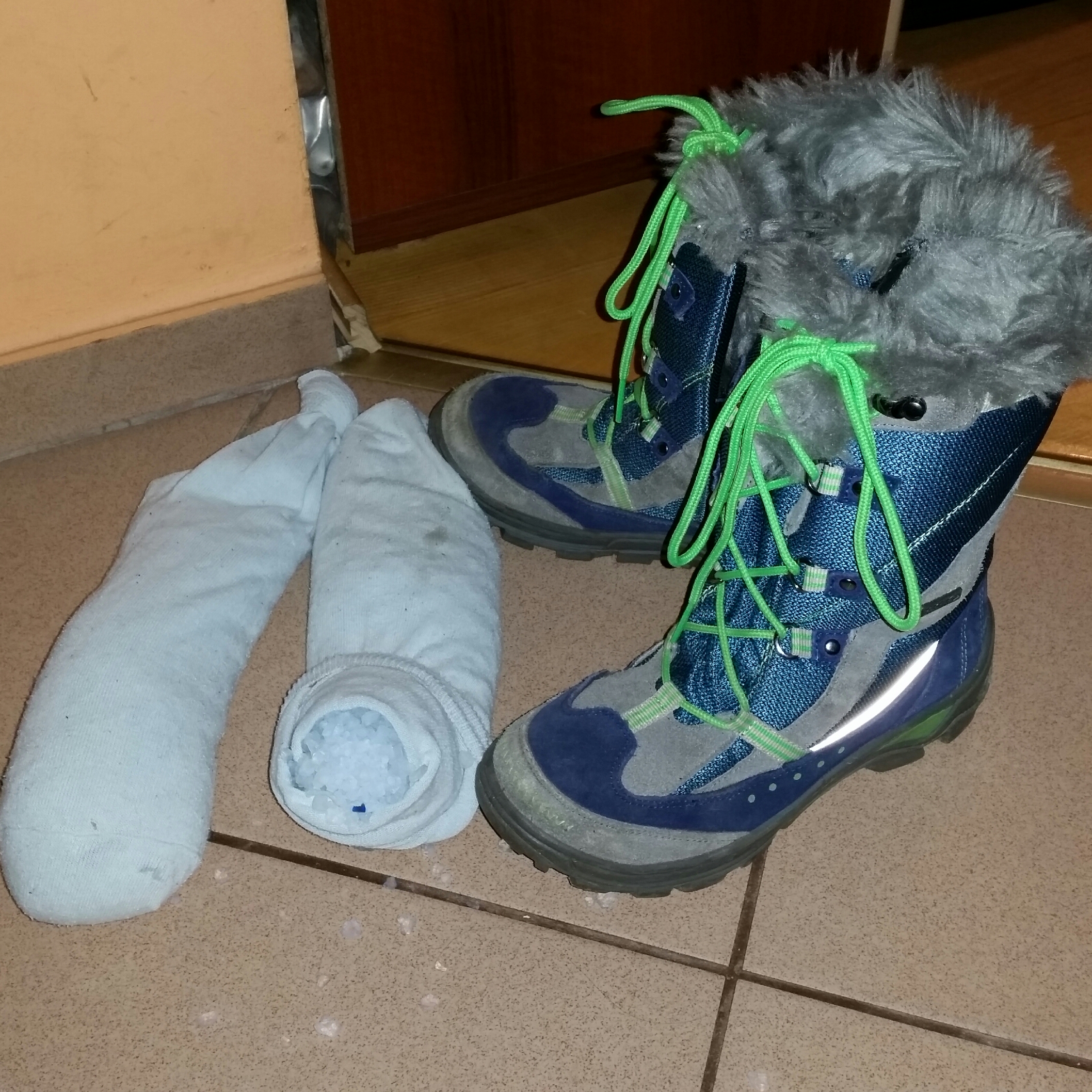 Pozbywanie sie wilgoci z bucikow czyli koci zwirek w skarpetkach %-)