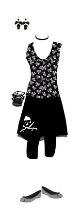 karincoma: broszka z czacha na czarnej, krotkiej, zwiewnej sukieneczce? 'emo'. |