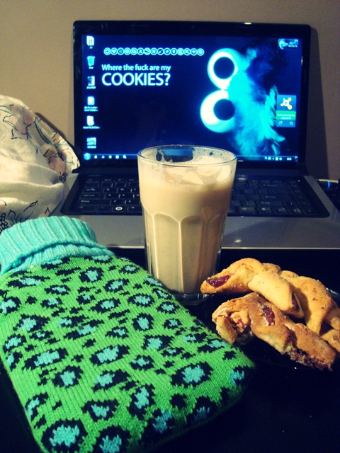 znowu jestem chora :/ ale mam swój mały zestaw na przeziębienie, termoworek <3 ciepłe kawowe mleko i mamunie faworki.
