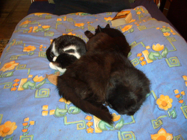 kociaciocia: Moze mi się koci oduczą siadania przy komputerze. Już drugi raz prychnęlam herbatą na kota. Wytarłam go, ale i tak się dokładnie myje. |