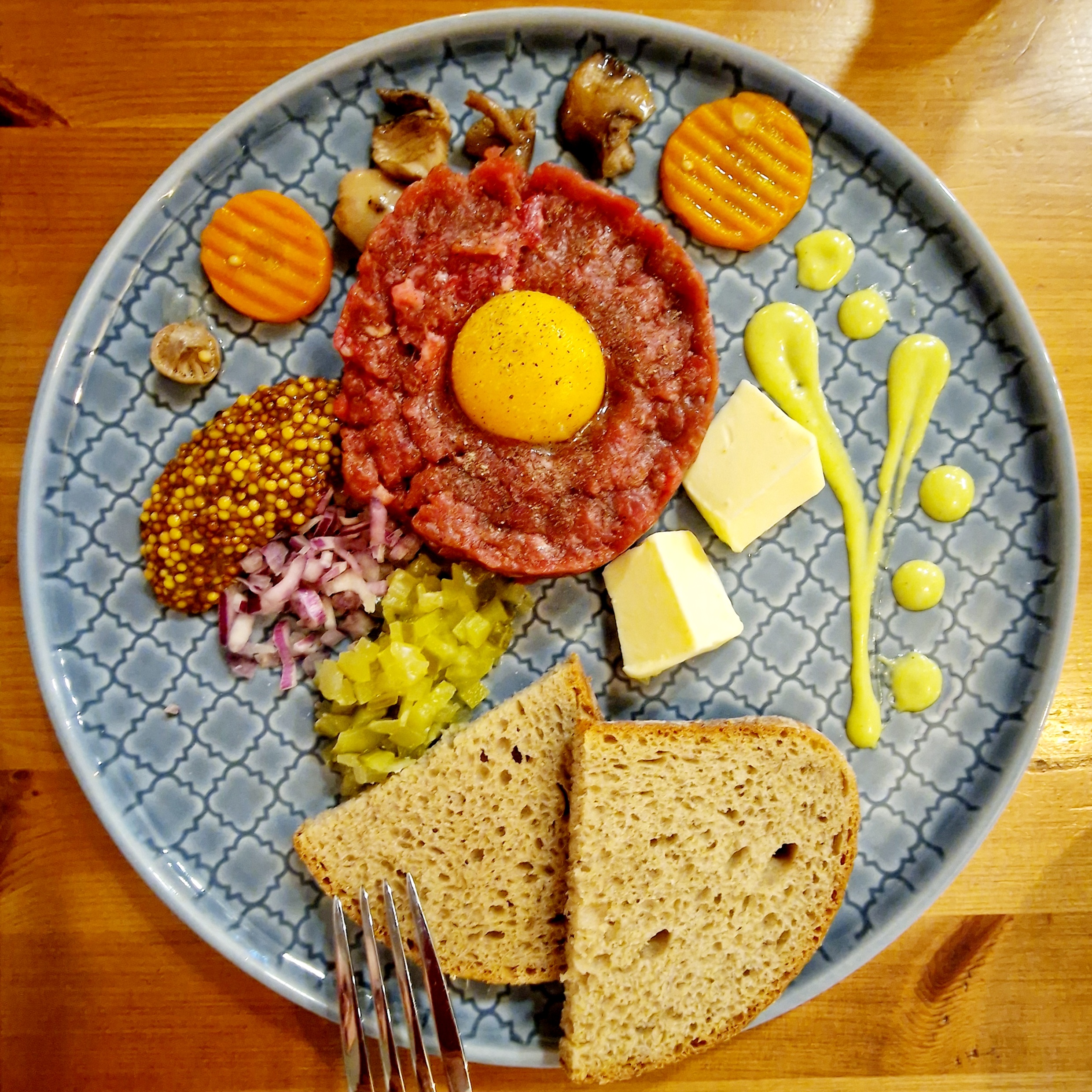 Troszku się dziś nałaziliśmy po mieście, wyszło 21187 kroków. Na obiadek wpadliśmy na tatara.