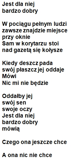"Próbuję kochać, już nie kocham próbować. Sęk w tym, że nie potrafię być źródłem domowego ogniska. Próbowałam."