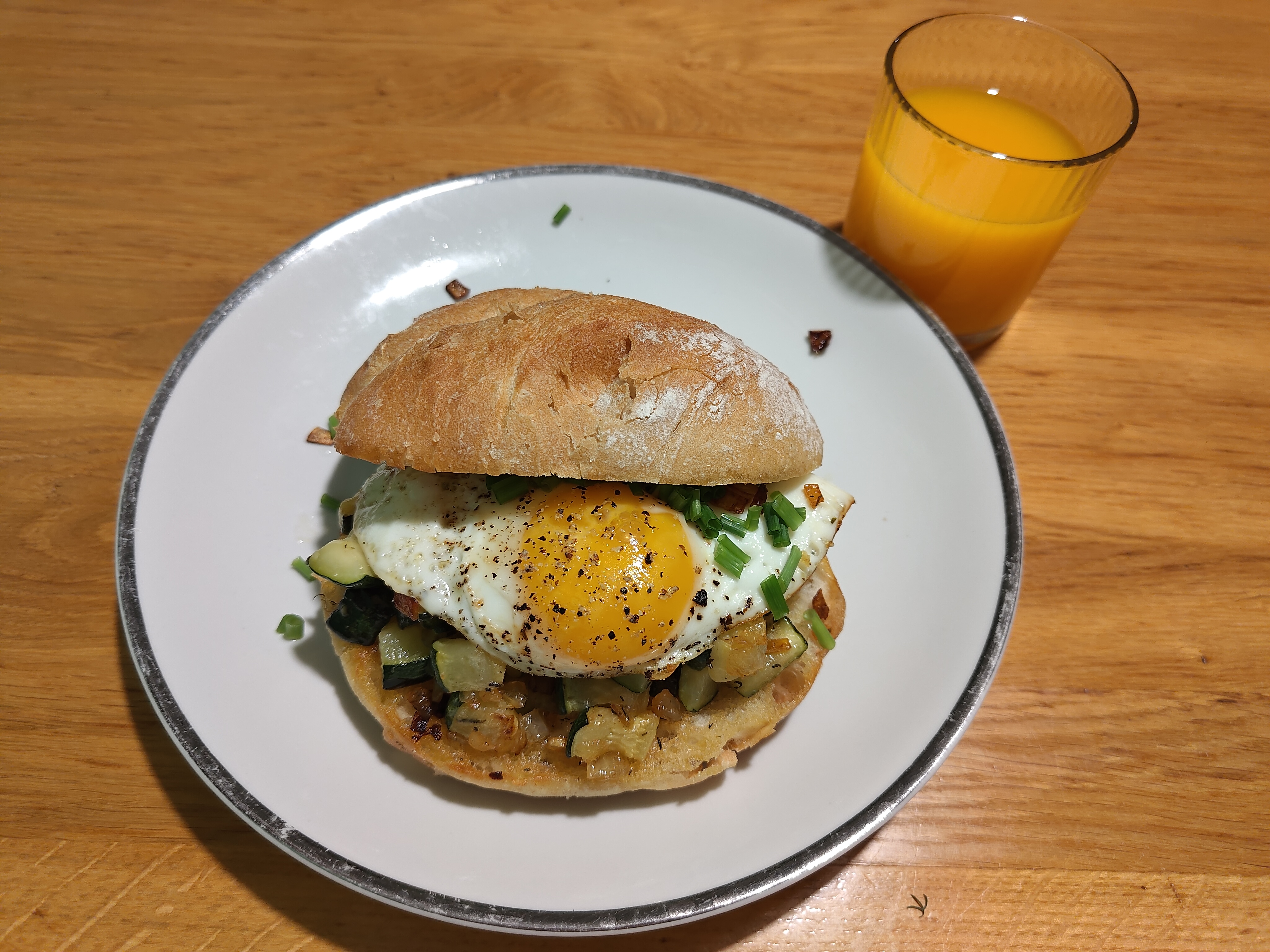 lafemmejuriste: #lapopote Wszystko może być burgerem, jeśli jest się wystarczająco odważnym: cukinia smażona z cebulą i czosnkiem und jajko sadzone. |