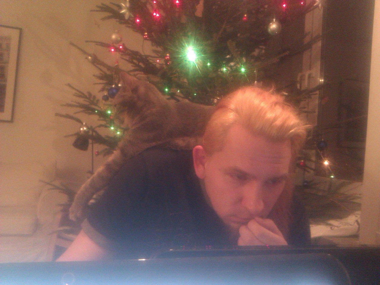 luca: Oho, #kot Plamka odkryła, że jak się zębami szarpie choinkę, to tak fajnie igły się z niej sypią. |