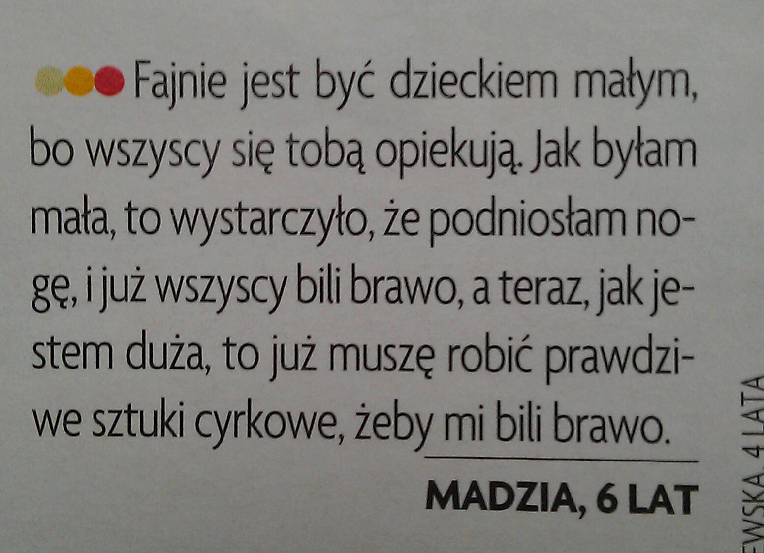 luca: Siostra do synka: "Idź, powiedz dzidzi, żeby wyszła z brzucha." Kostek, niecałe dwa lata - sprint prosto do mnie, łapka na mój brzuch: "Dzidzidzidzi!" |